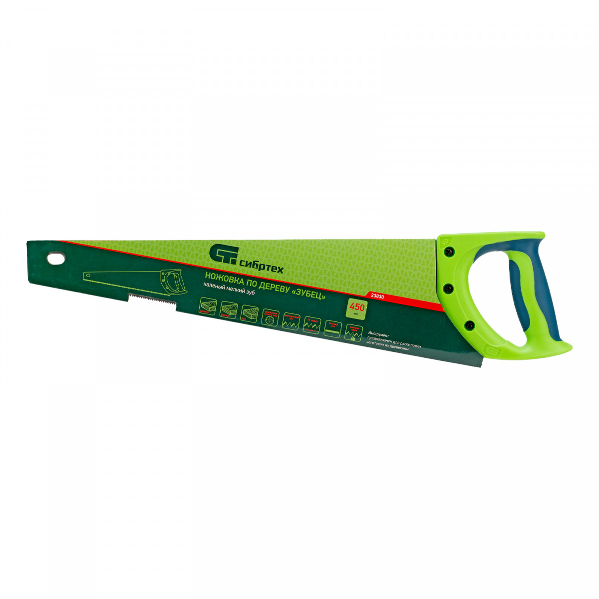 Ножовка по дереву"Зубец" для точных пильных работ, 450 мм, каленый зуб 2D, 14 TPI, двухкомпонентная рукоятка Сибртех