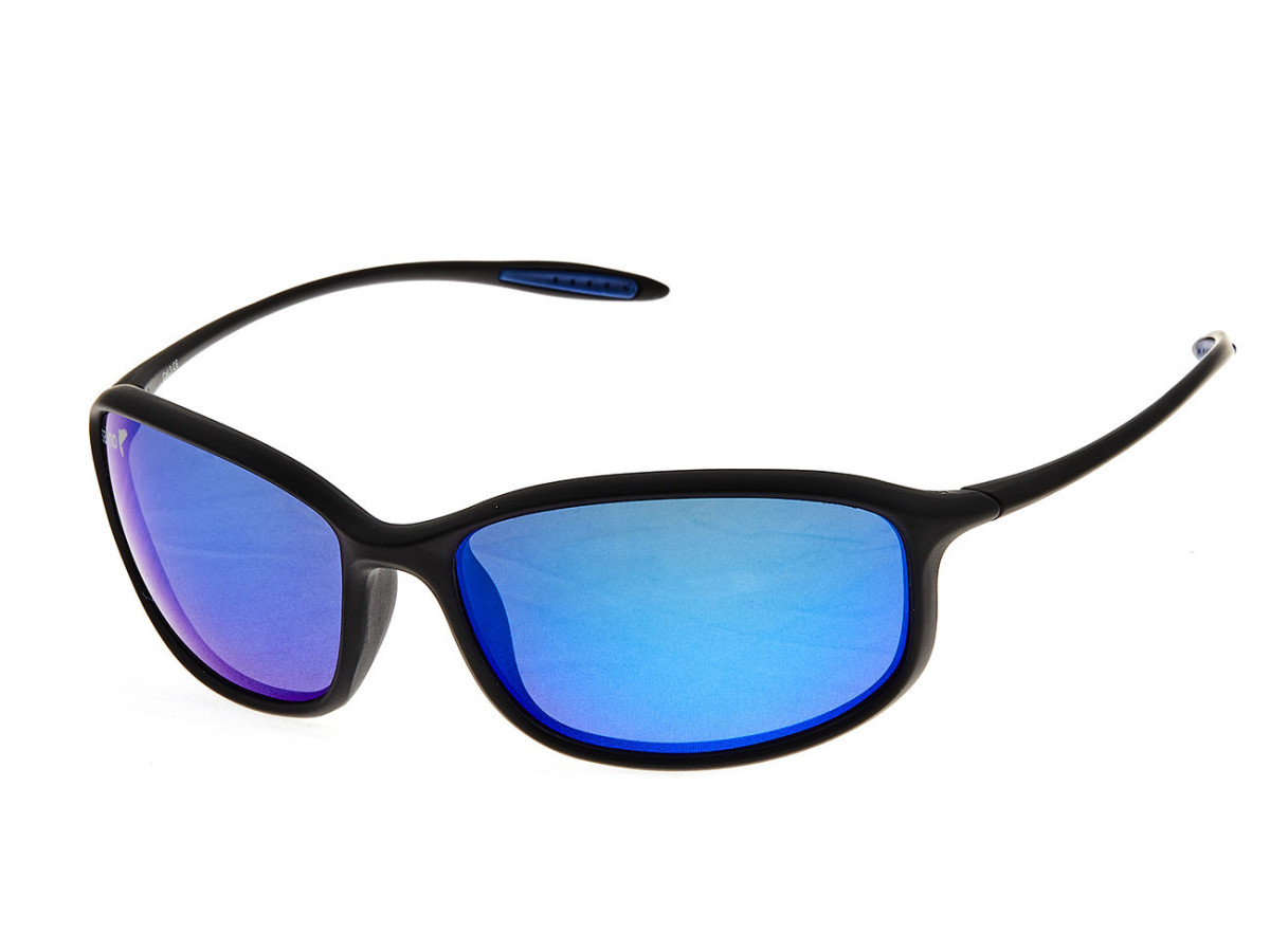 Солнцезащитные очки с линзами серого цвета и зеркальным напылением синего цвета.