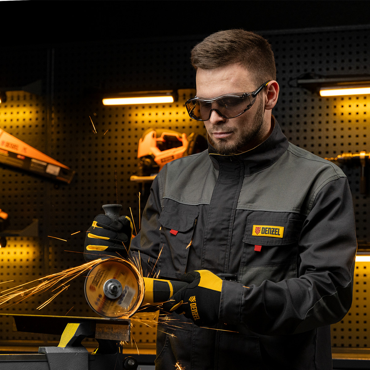 Очки защитные открытые Denzel 89203 с увеличенными поликарбонатными дымчатыми линзами предназначены для защиты глаз от механических повреждений и УФ-излучения. Очкам присвоен класс механической прочности F, они обеспечивают защиту от высокоскоростных частиц с низкоэнергетическим ударом (скорость частиц до 45 м/с). Легкие универсальные очки используются во время работы с электро- и бензоинструментом, на производстве и в быту.