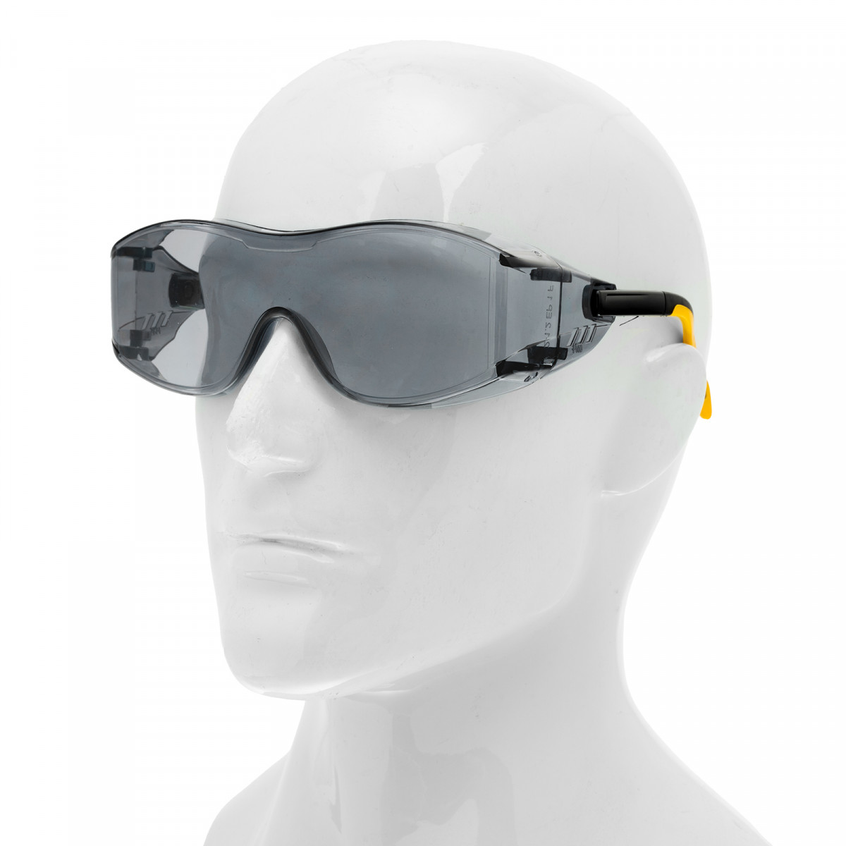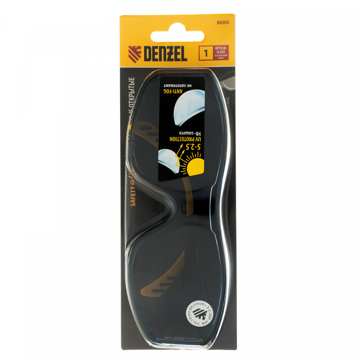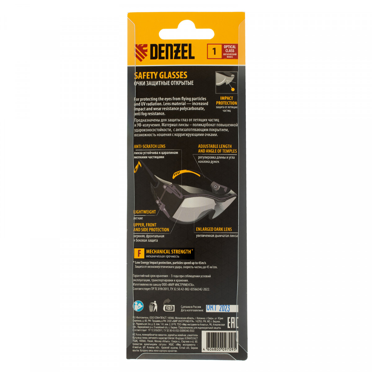 Очки защитные открытые, поликарбонатные, увеличенная дымчатая линза, регулируемые дужки Denzel