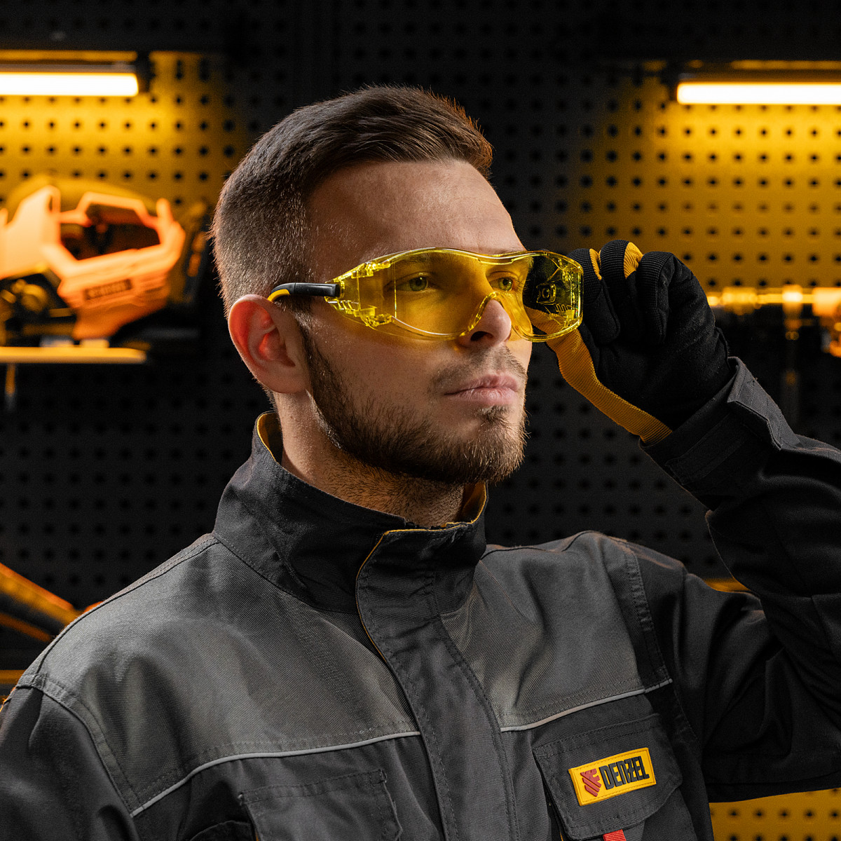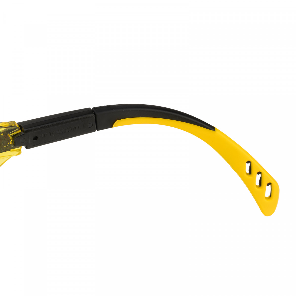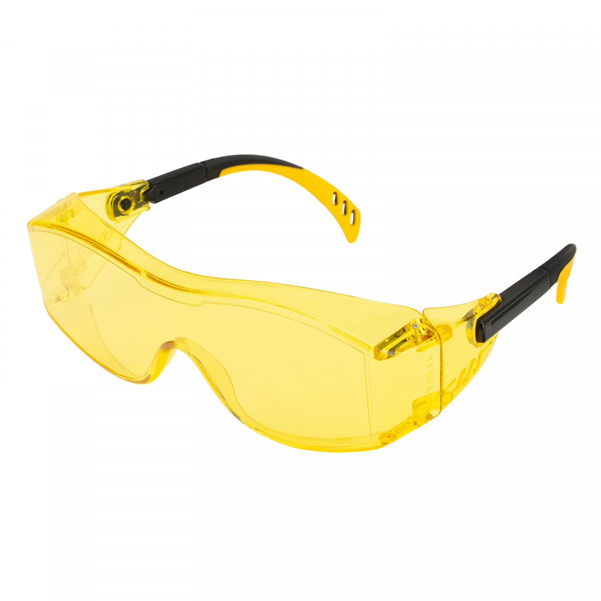Очки защитные открытые, поликарбонатные, увеличенная желтая линза, регулируемые дужки Denzel