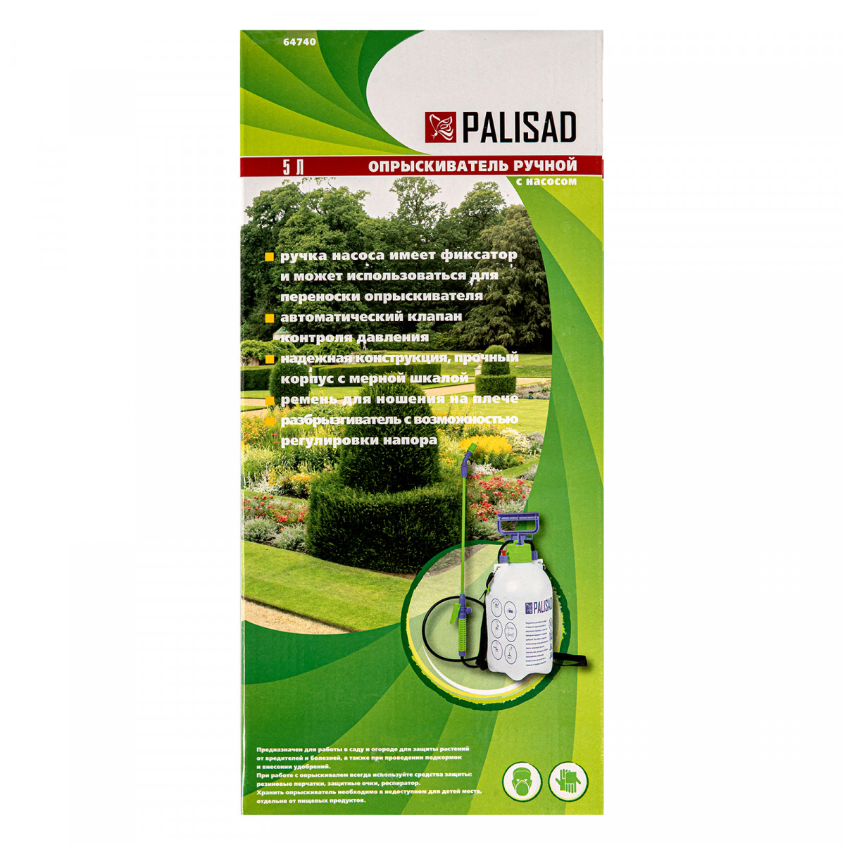 Ручной опрыскиватель Palisad 64740 с баком объемом 5 л, с насосом, шлангом и разбрызгивателем, используется для ухода за растениями на грядках, клумбах и в теплицах. Устройство предназначено для распыления пестицидов и внесения удобрений. Подача жидкости контролируется при помощи регулируемой распыляющей головки. Ремень для ношения на плече позволяет освободить руки для более комфортной работы.