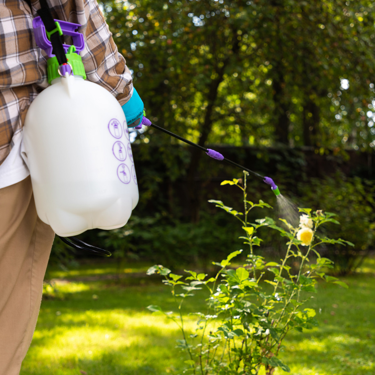 • Продуманная конструкция — опрыскиватель можно перемещать за ручку помпового насоса.