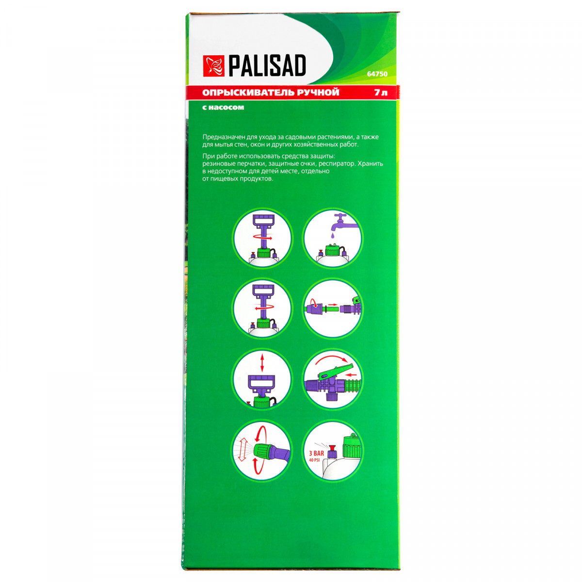Опрыскиватель ручной, 7 л, с насосом, шлангом, разбрызгиватель Palisad