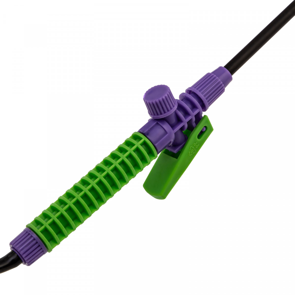 - Удобная транспортировка — опрыскиватель можно перемещать, держа за ручку помпового насоса.