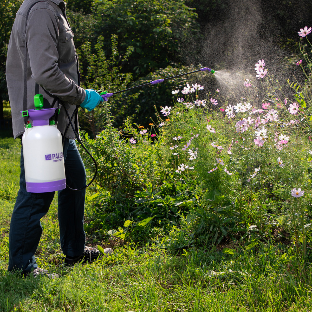 Опрыскиватель ручной усиленный с горловиной 5 л, с насосом, шлангом и разбрызгивателем Palisad