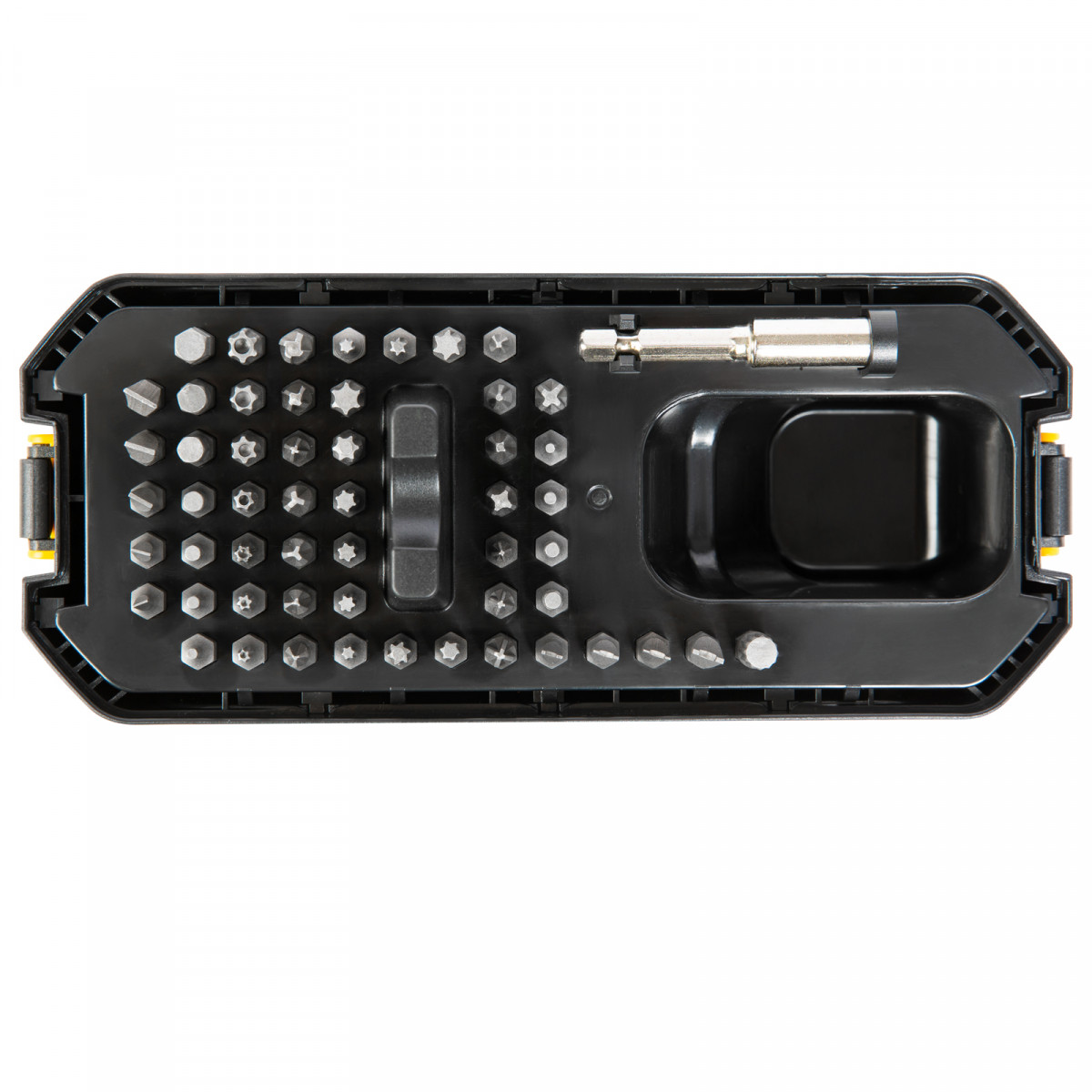 - Продуманная комплектация — к инструменту прилагается набор из 54 бит, что позволяет сразу приступить к работе.