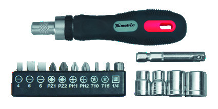 Отвертка реверсивная с набором бит и насадок торцевых 16 шт. CrV//MATRIX