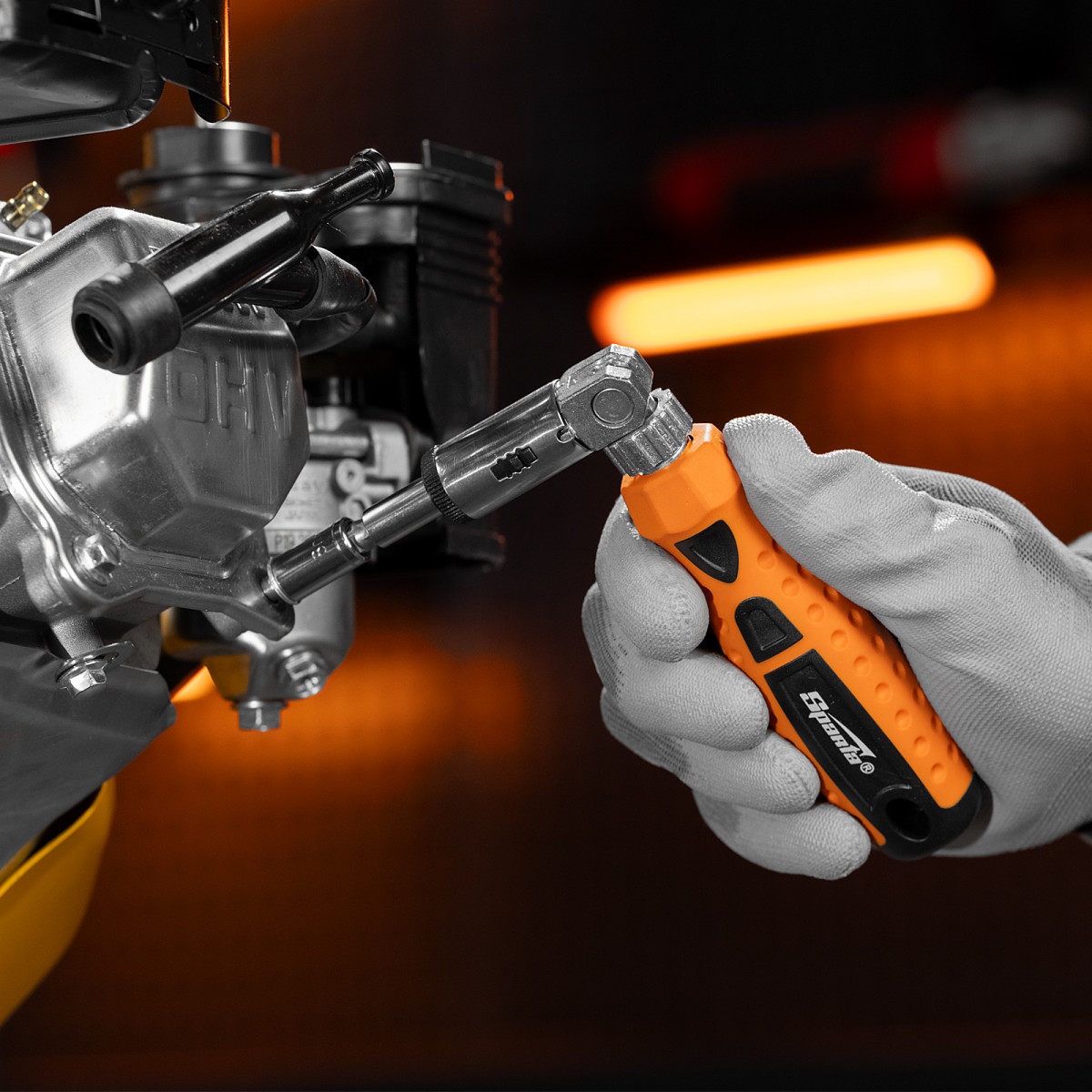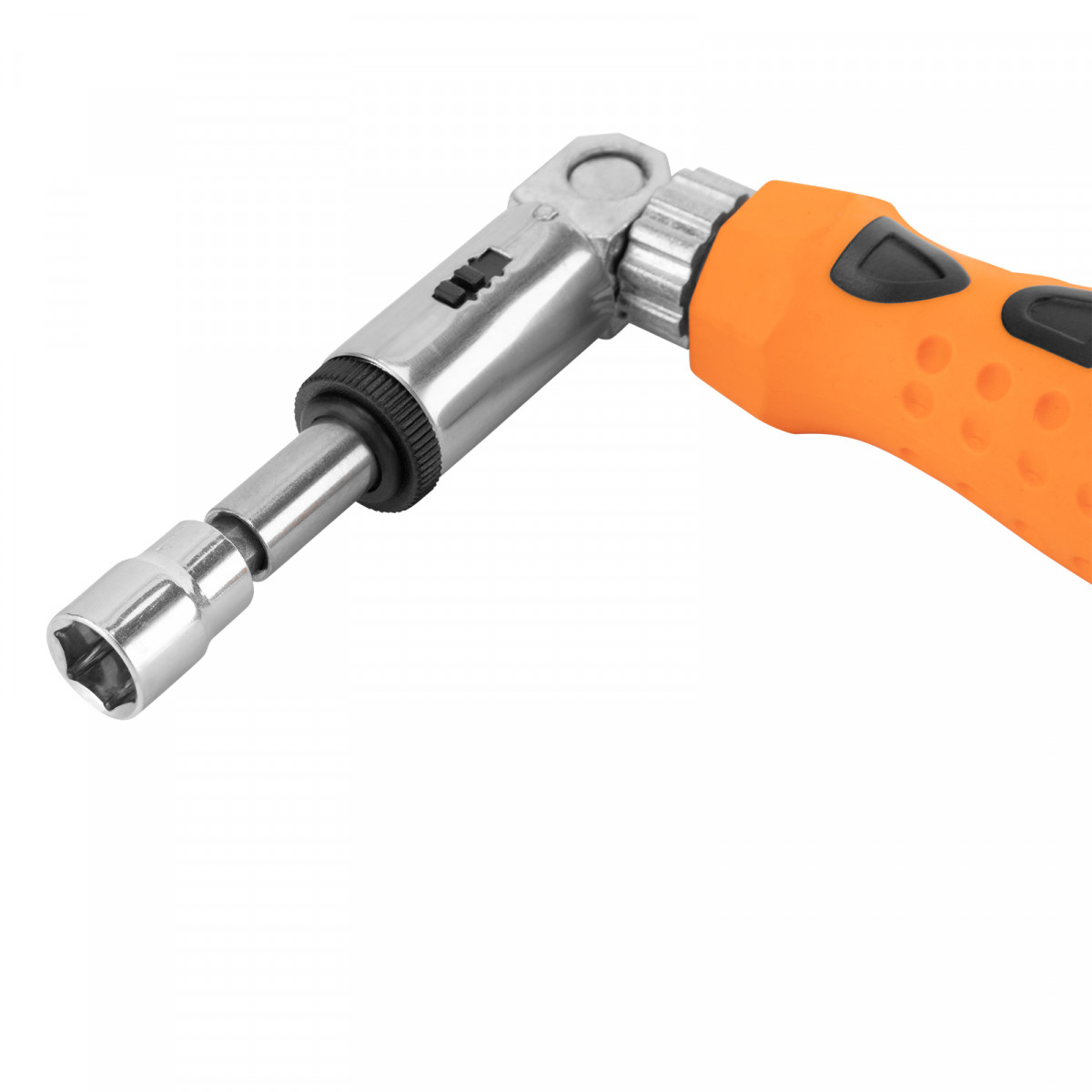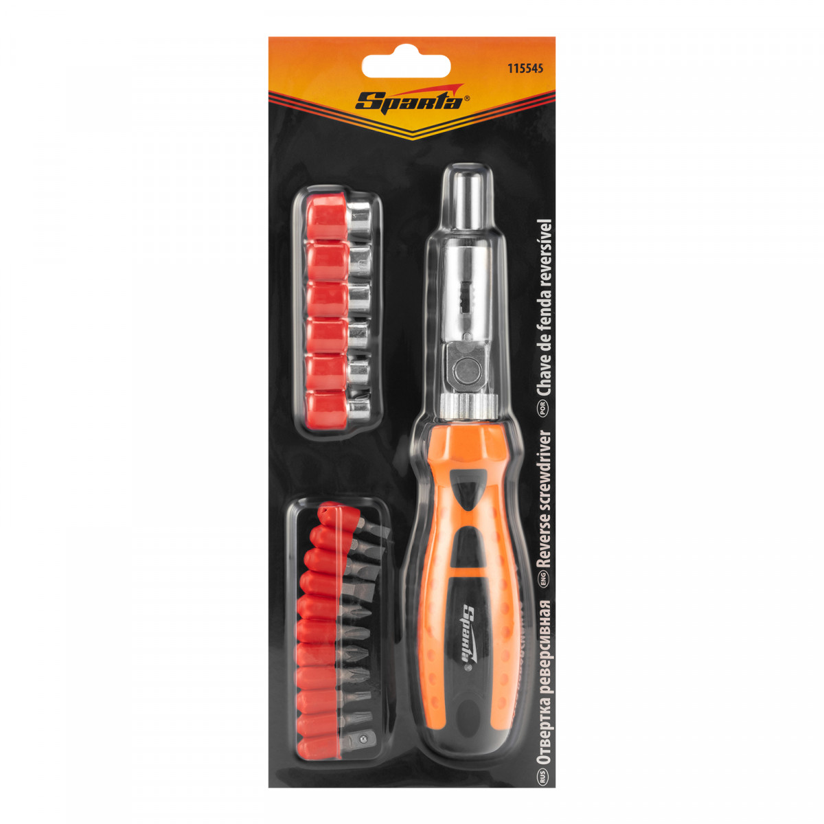 Реверсивная отвертка с шарниром Sparta 115545 входит в набор из 18 предметов, включающий также биты с хвостовиком 1/4 дюйма (тип С), торцевые головки и переходник для торцевых головок. Инструмент с насадками применяется для быстрого и эффективного монтажа/демонтажа резьбовых соединений. Реверсивный механизм значительно облегчает работу и снижает усталость рук, т.к. не требуется постоянно перехватывать ручку отвертки. С отверткой можно использовать любые биты длиной 25 мм. Комплект пригодится частным мастерам при проведении ремонтных работ.