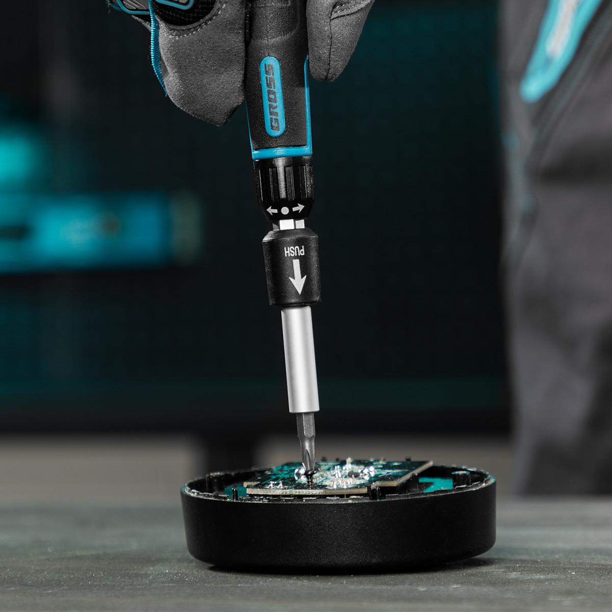 - Вращающийся затыльник обеспечивает более удобную работу с микровинтами.