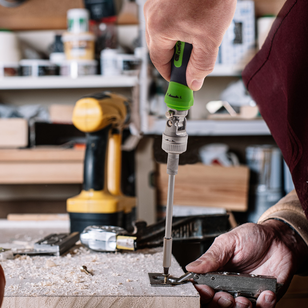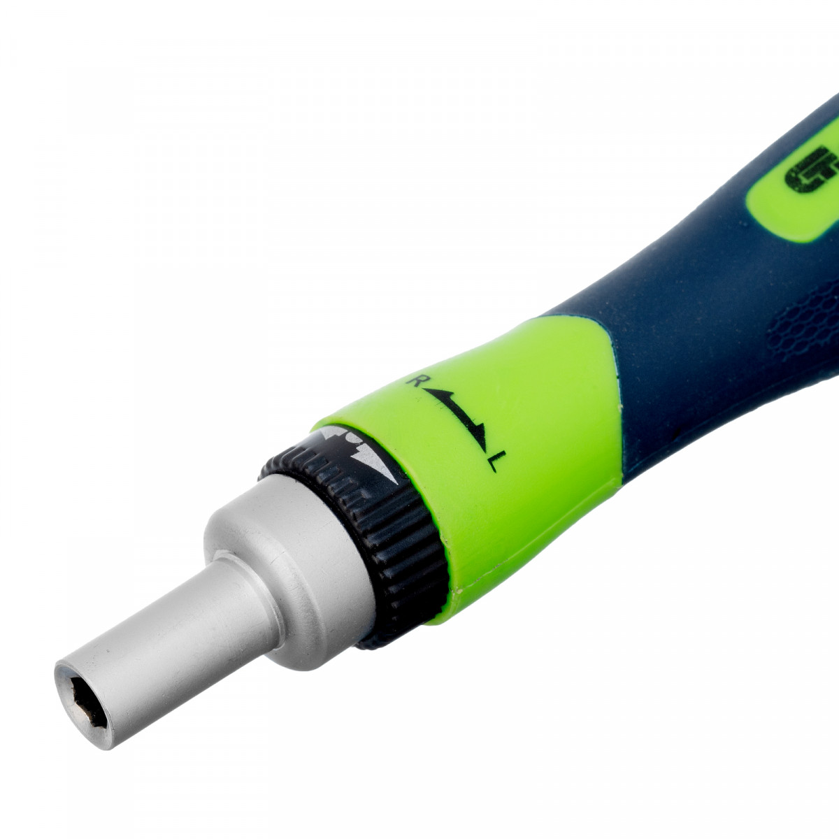 • Реверсивный механизм — отвертки можно вращать одной рукой, не перехватывая рукоятку.