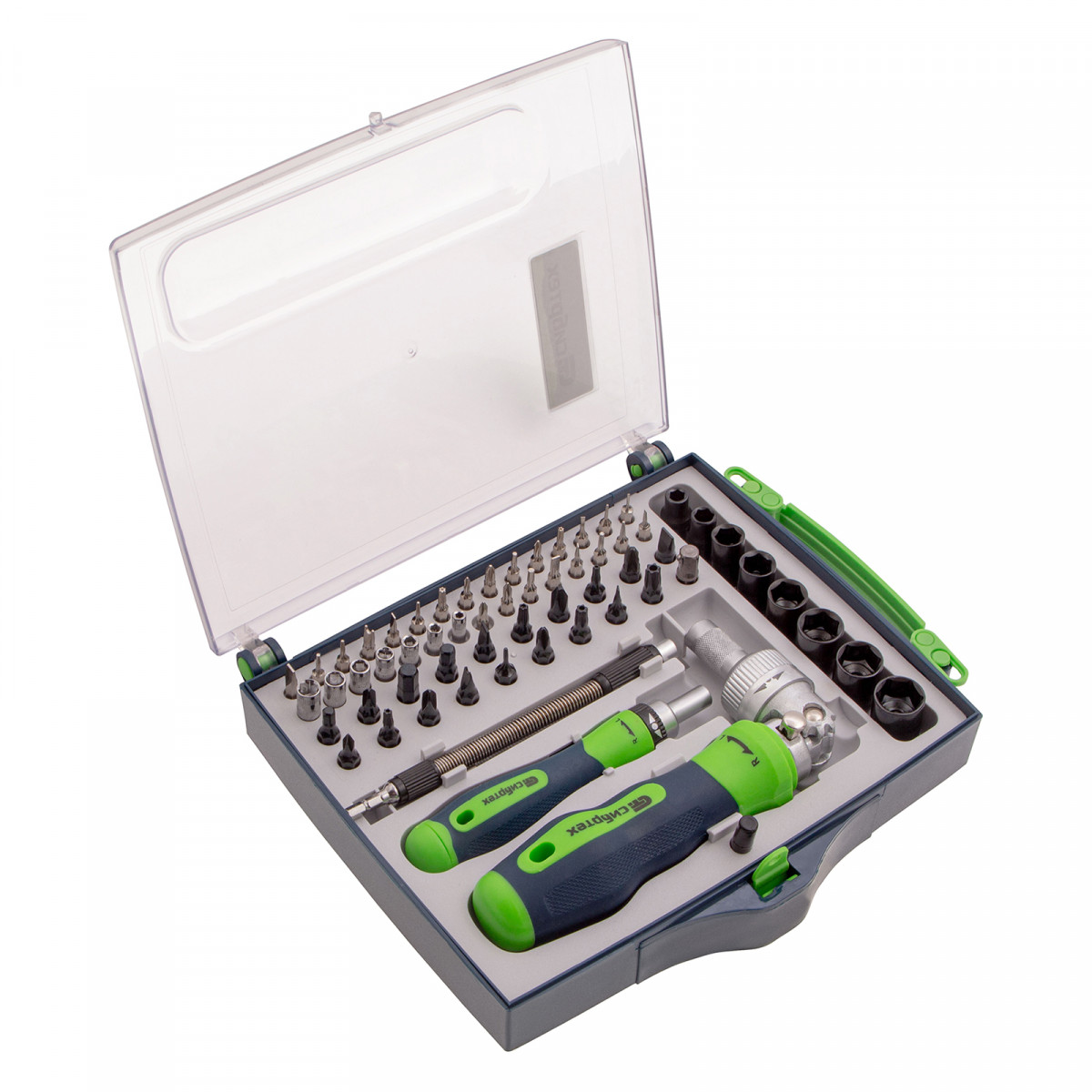 Отвертки реверсивные с набором бит, торцевых головок, 61 предмет, CrV Сибртех