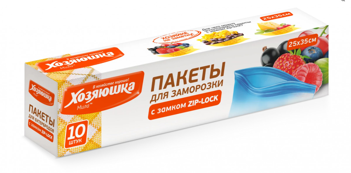 Пакеты для заморозки ХОЗЯЮШКА Мила с замком ZIP-LOCK 25*35см10шт