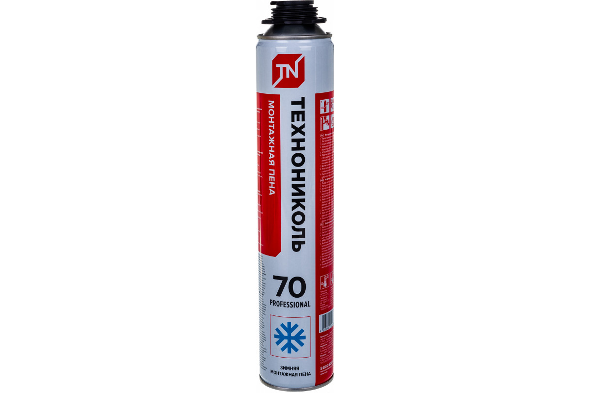 Монтажная профессиональная пена Технониколь 70 PROFESSIONAL зимняя TN528373 представляет собой однокомпонентный полиуретановый материал в аэрозольной упаковке. Продукт отличается хорошим первичным расширением, повышенным объёмом выхода пены.