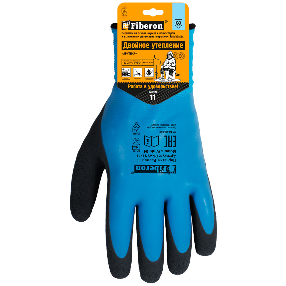 Перчатки Двойное утепление Аквастоп акрил с полиэстером, латексное покрытие Fiberon