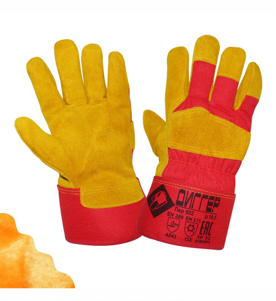 Перчатки ДИГГЕР спилковые комбинированные утепленные.