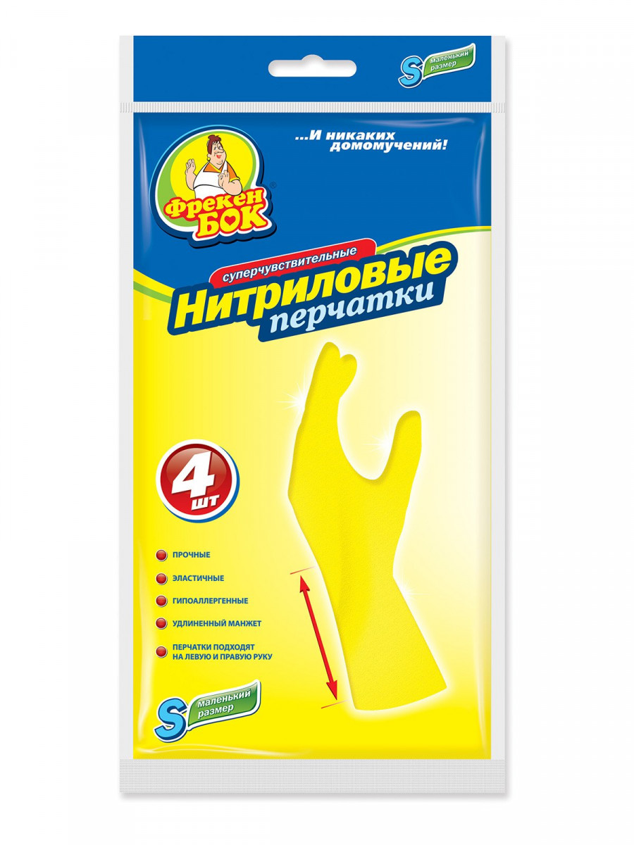 Перчатки нитриловые с манжетами S 4шт в упаковке Фрекен БОК S