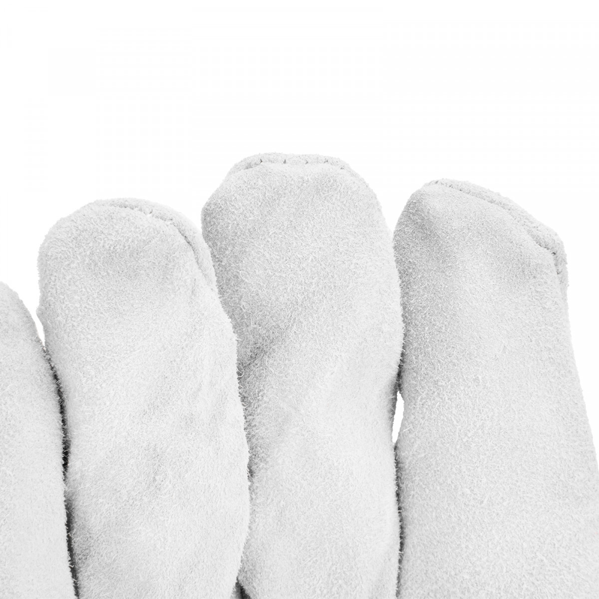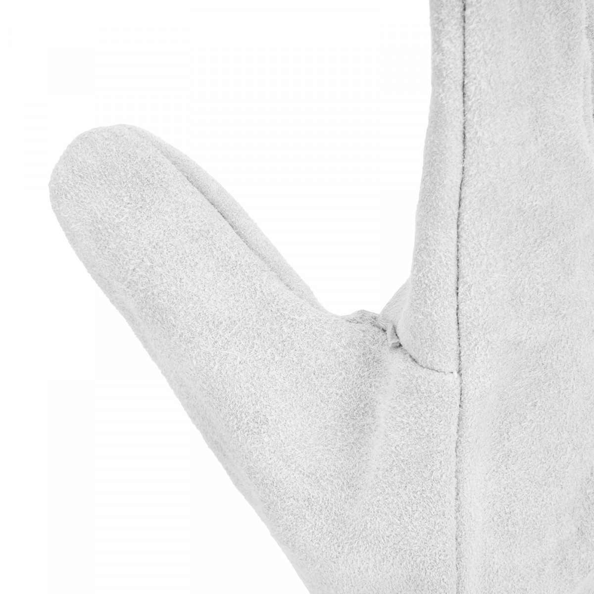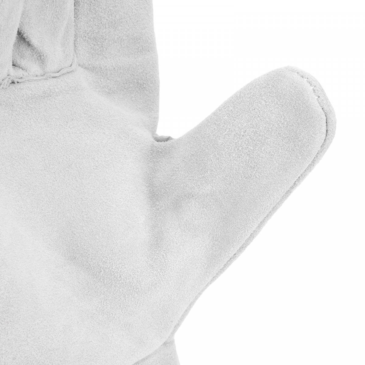 - Прочность и долговечность — перчатки из говяжьего спилка устойчивы к механическим повреждениям и износу.