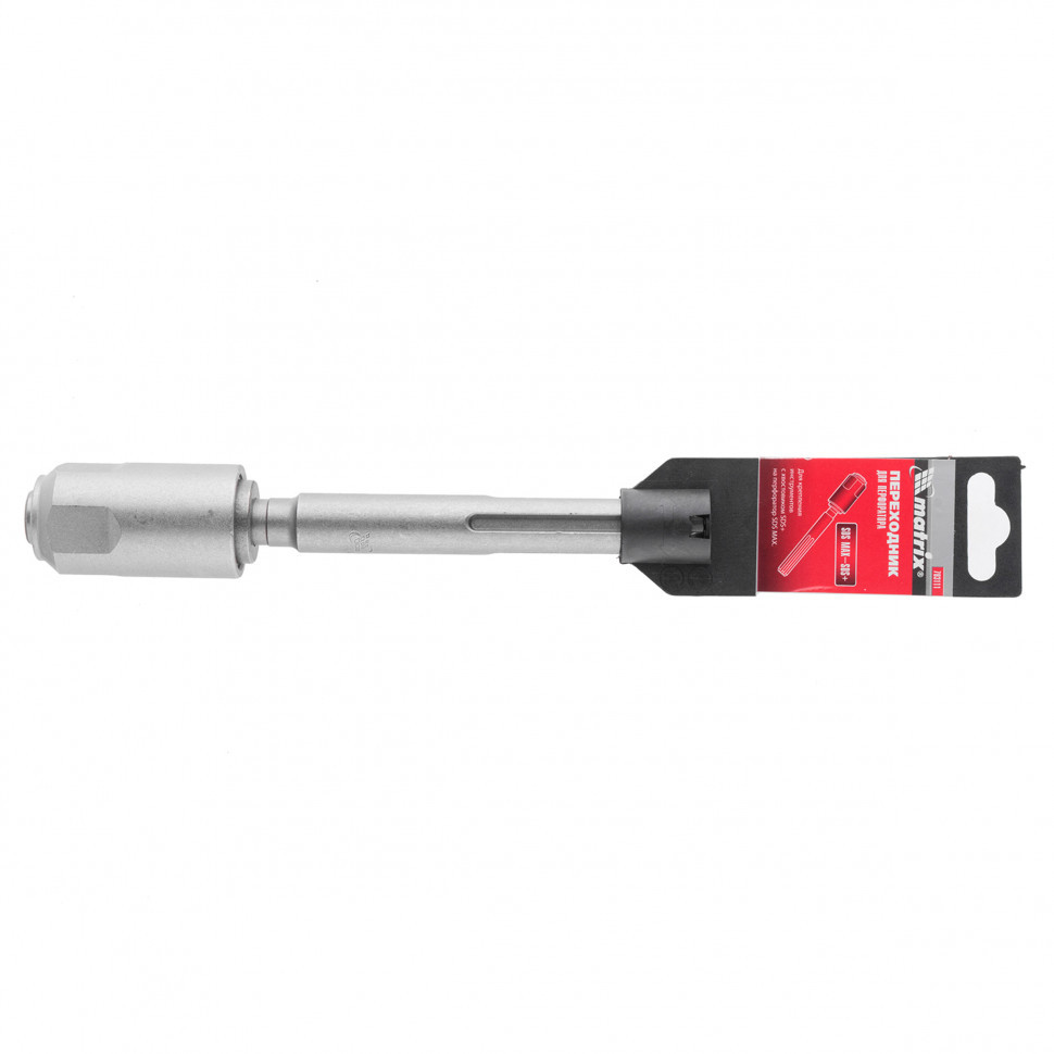 Переходник Matrix 703111 позволяет устанавливать на перфораторы типа SDS MAX оснастку с хвостовиком SDS PLUS. Благодаря ему возможности перфоратора становятся гораздо шире, появляется возможность работать с разным типом сверл. Переходник будет полезен для полупрофессионального использования.