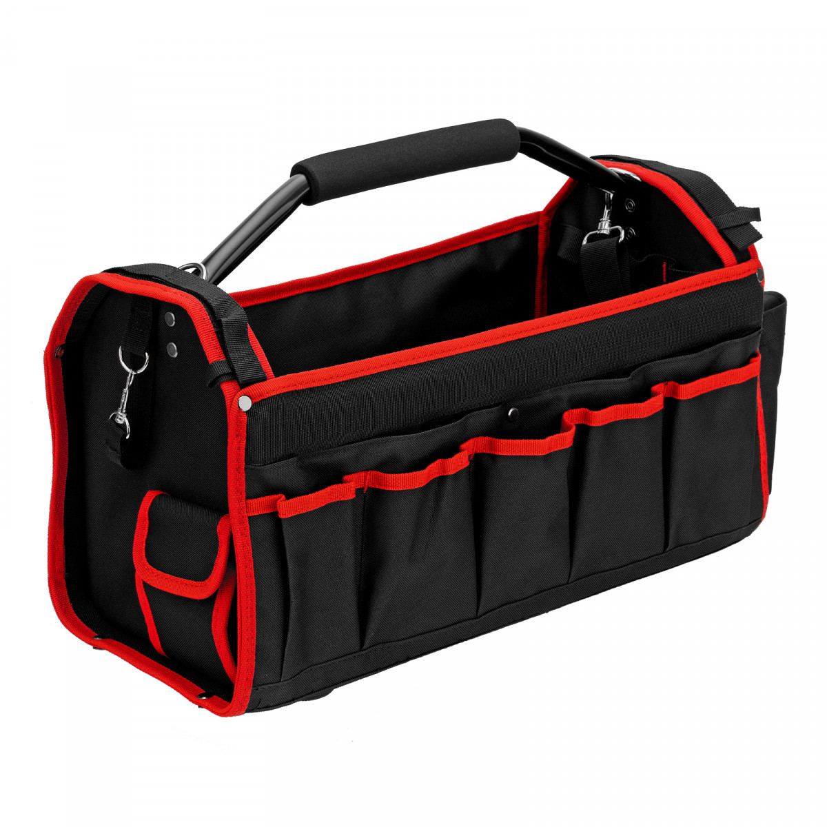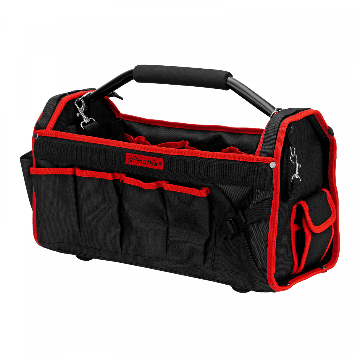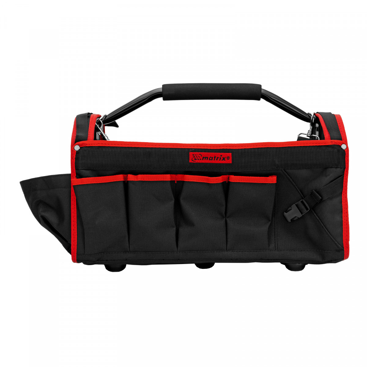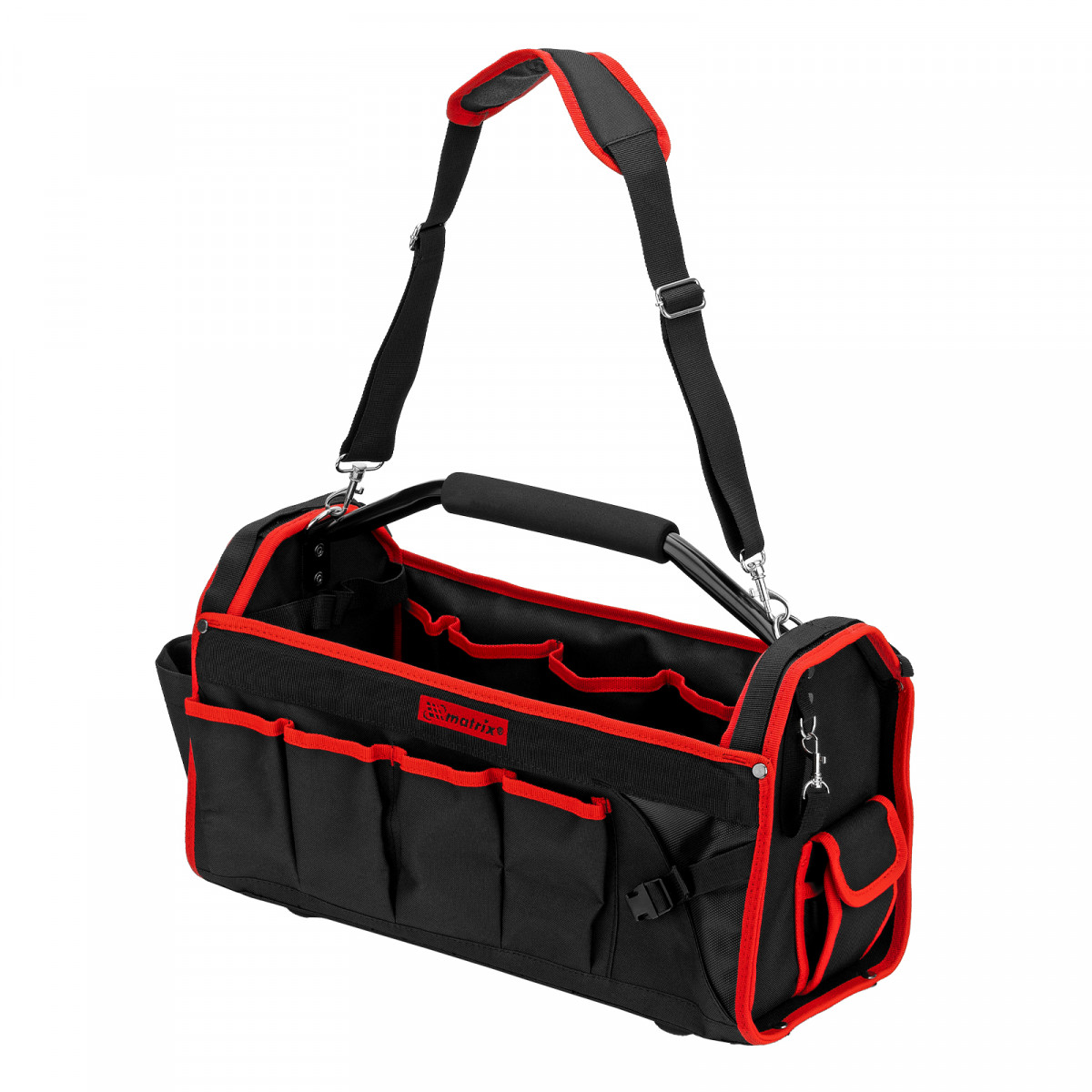 Каркасная переноска Matrix 90258 размером 490 х 230 х 280 мм удобна для перемещения и хранения инструментов. Имеет прочный каркас и весит 1,98 кг, ее легко транспортировать благодаря регулируемому плечевому ремню. В удобных карманах можно расположить все необходимые инструменты. Переноска пригодится дома, в гараже или в поездке.