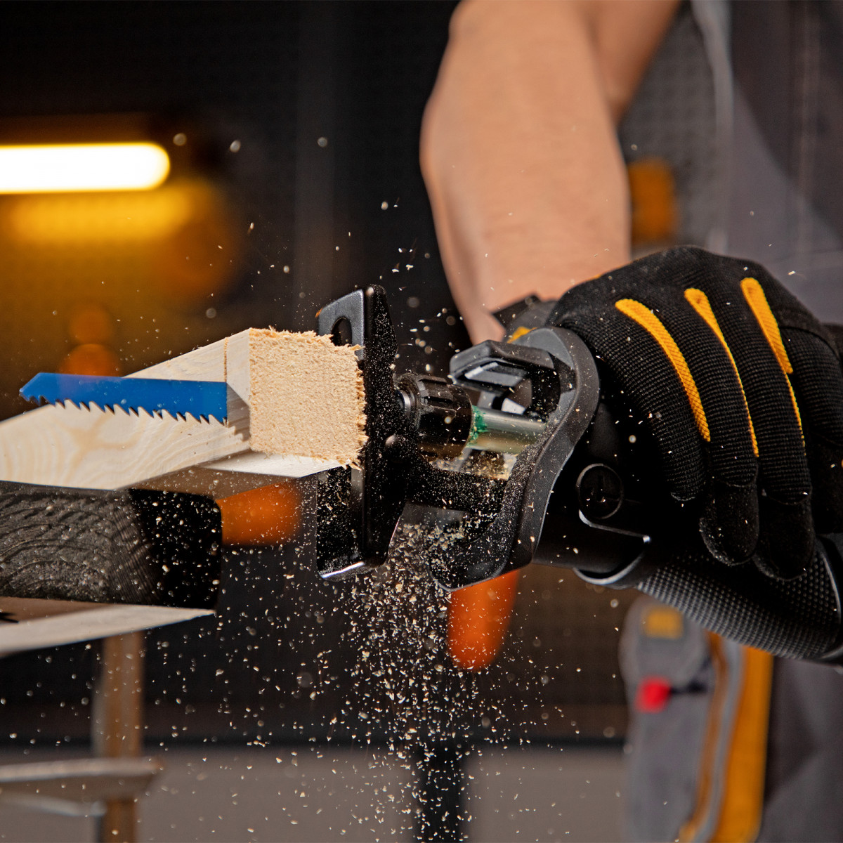 Сабельная аккумуляторная пила Denzel BRC-120 28460 с бесщеточным двигателем работает от аккумулятора Li-Ion с рабочим напряжением 18 В. Предназначена для распила фанеры, досок, ДСП, ДВП, пластика, а также для обрезки веток. Максимальная глубина пропила в древесине составляет 120 мм, в стали — 10 мм. Оснастка совершает до 3100 ходов в минуту, что обеспечивает эффективную работу.,Универсальный аккумулятор емкостью 4 А/ч, с интеллектуальной системой распознавания нагрузки, рассчитан на длительный срок службы. Он совместим со всеми инструментами единой платформы Denzel battery system 18V серии IB.