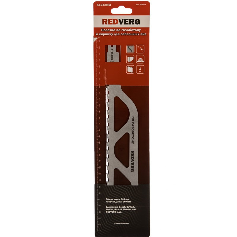 Пилка для сабельной пилы S1243 HM по газобетону REDVERG 305x30х1.5 2TPI, 1шт