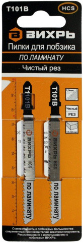Пилки для лобзика Т101В по ламинату,чистый рез 100х75мм (2 шт) Вихрь