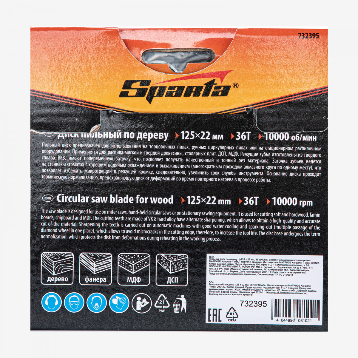 Пильный диск Sparta 732395 диаметром 125 х 22 мм, с 36 зубьями, используется для распила древесины мягких и твердых пород, фанеры, плит ДСП и МДФ. 36 зубьев обеспечивают оптимальное по скорости и качеству пиление. Благодаря попеременной заточке зубцов достигается высокое качество реза. Диск устанавливается на торцовочную, циркулярную пилу либо на распиловочный станок, применяется в бытовой сфере.