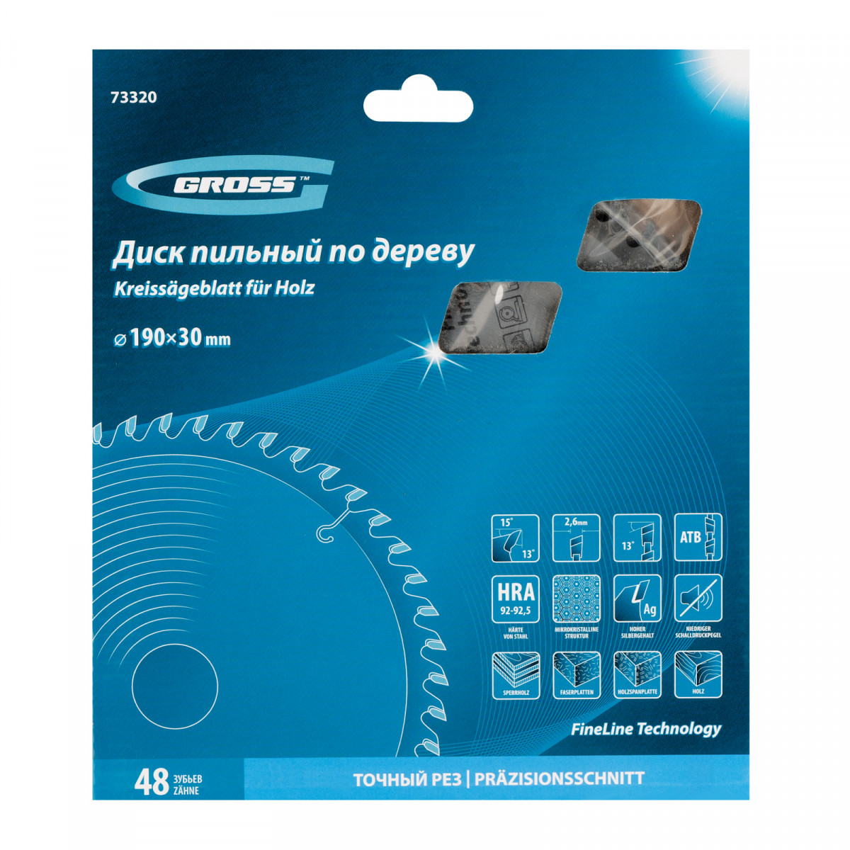 • Высокое качество работ — 48 мелких зубьев и режущие кромки, прошедшие многоступенчатую автоматическую заточку, обеспечивают точный и чистый рез материалов.