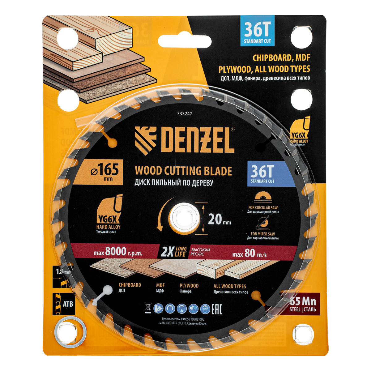 Пильный диск по дереву ф165 х 20 мм, 36 зубьев Denzel