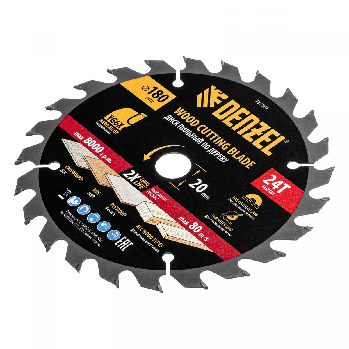 Пильный диск по дереву ф180х 20 мм, 24 зубьев Denzel