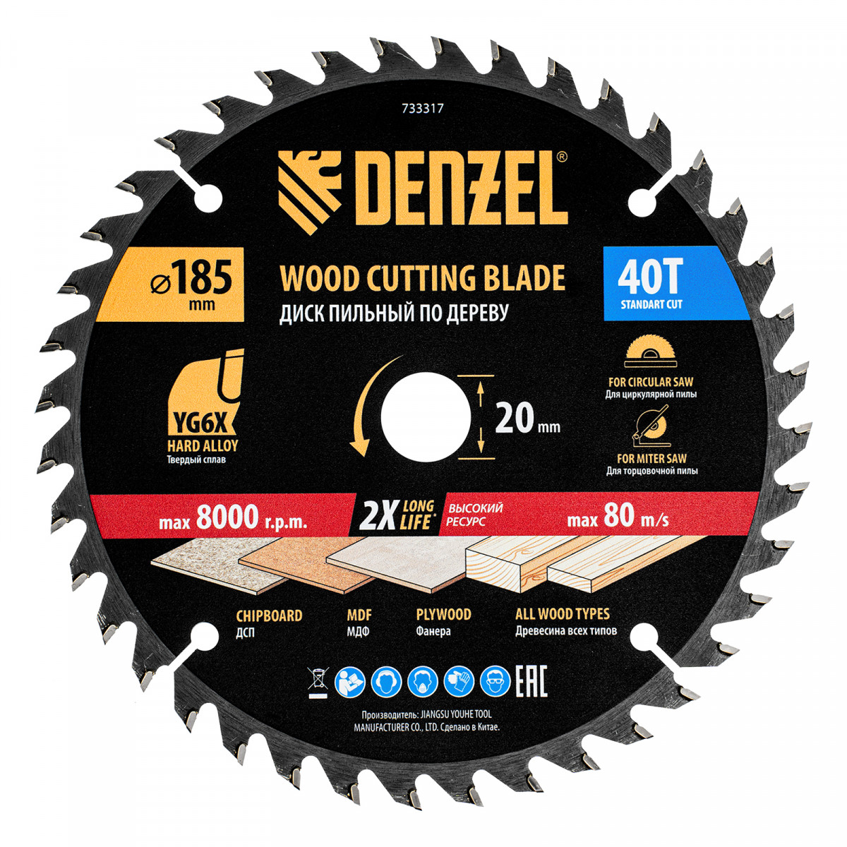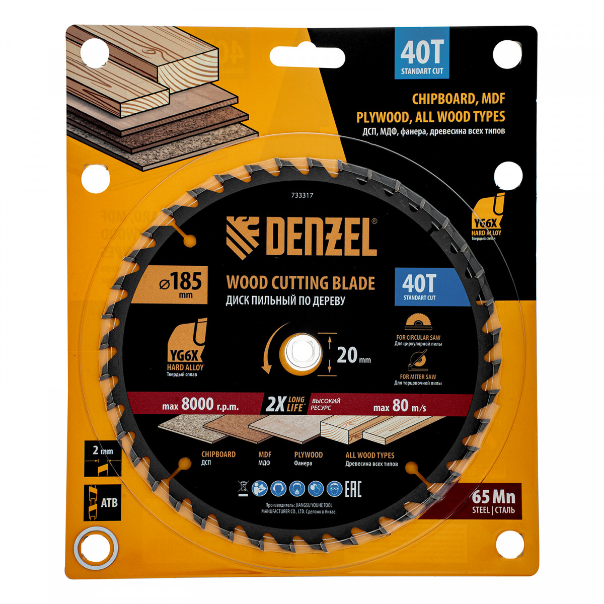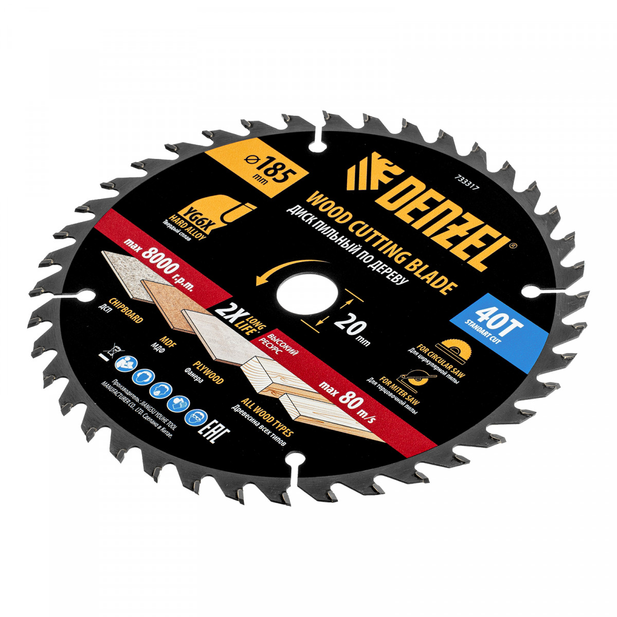 Пильный диск по дереву ф185 х 20 мм, 40 зубьев Denzel