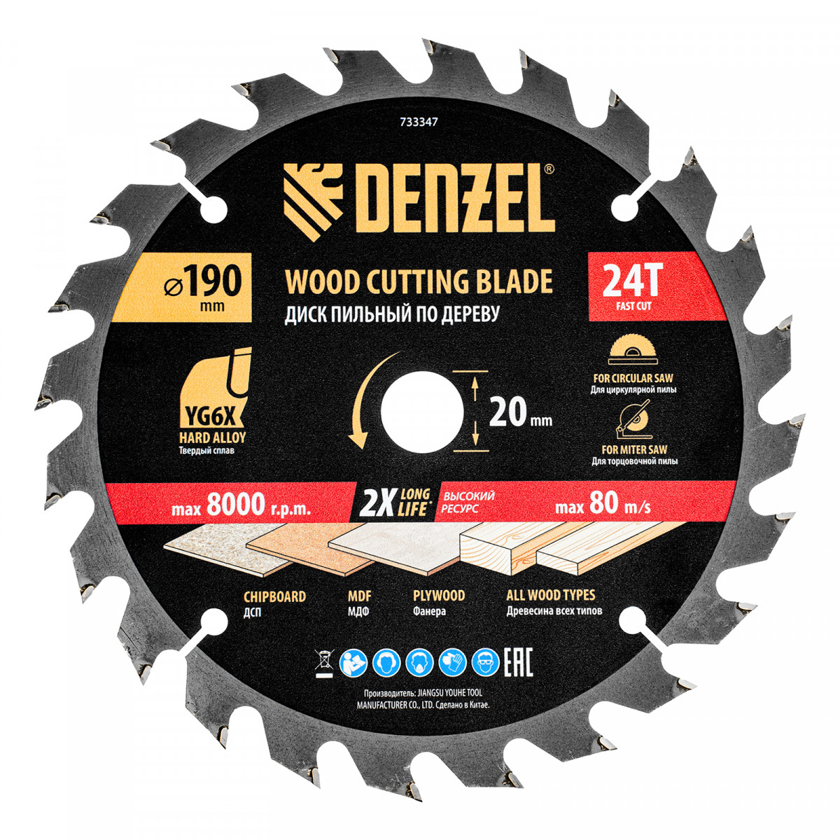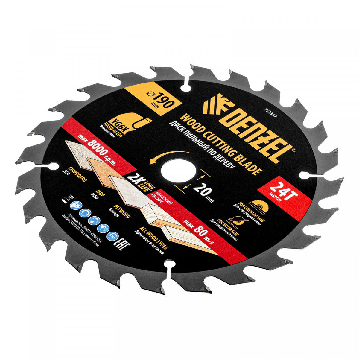Пильный диск по дереву ф190 х 20 мм, 24 зубьев Denzel