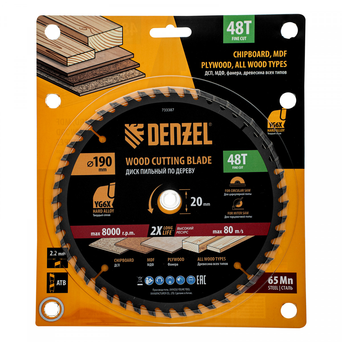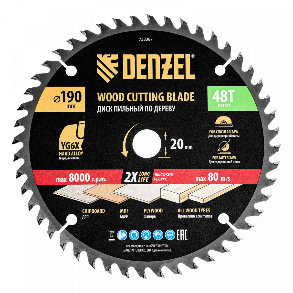Пильный диск по дереву ф190 х 20 мм, 48 зубьев Denzel