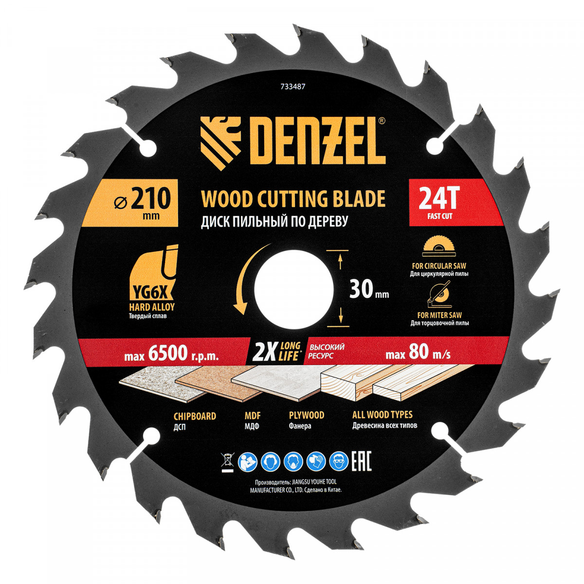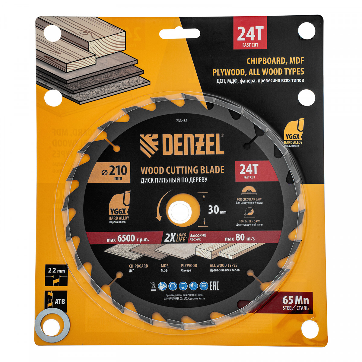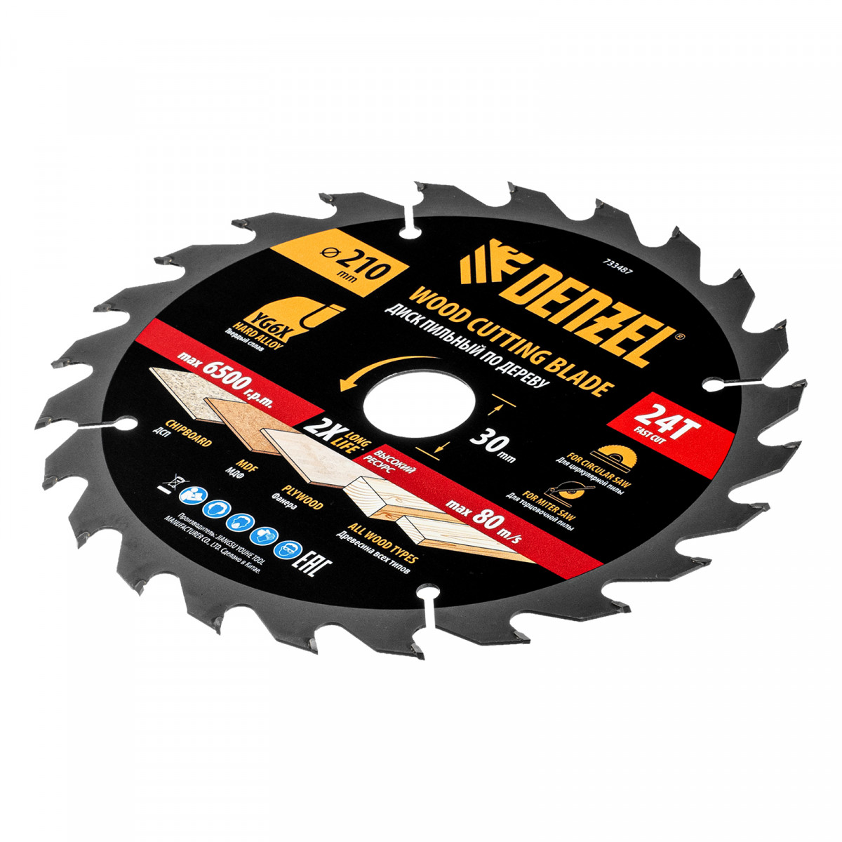 Пильный диск по дереву ф210 х 30 мм, 24 зубьев Denzel