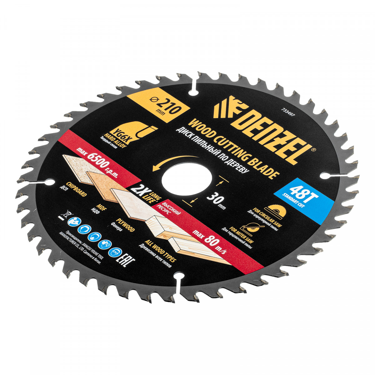 Пильный диск по дереву ф210 х 30 мм, 48 зубьев Denzel