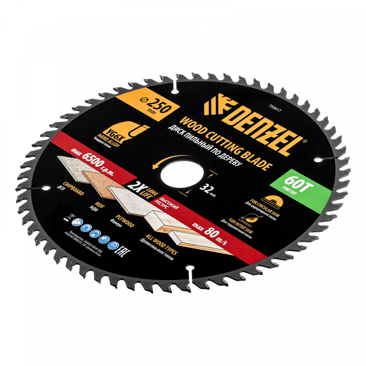 Пильный диск по дереву ф250 х 32 мм, 60 зубьев Denzel
