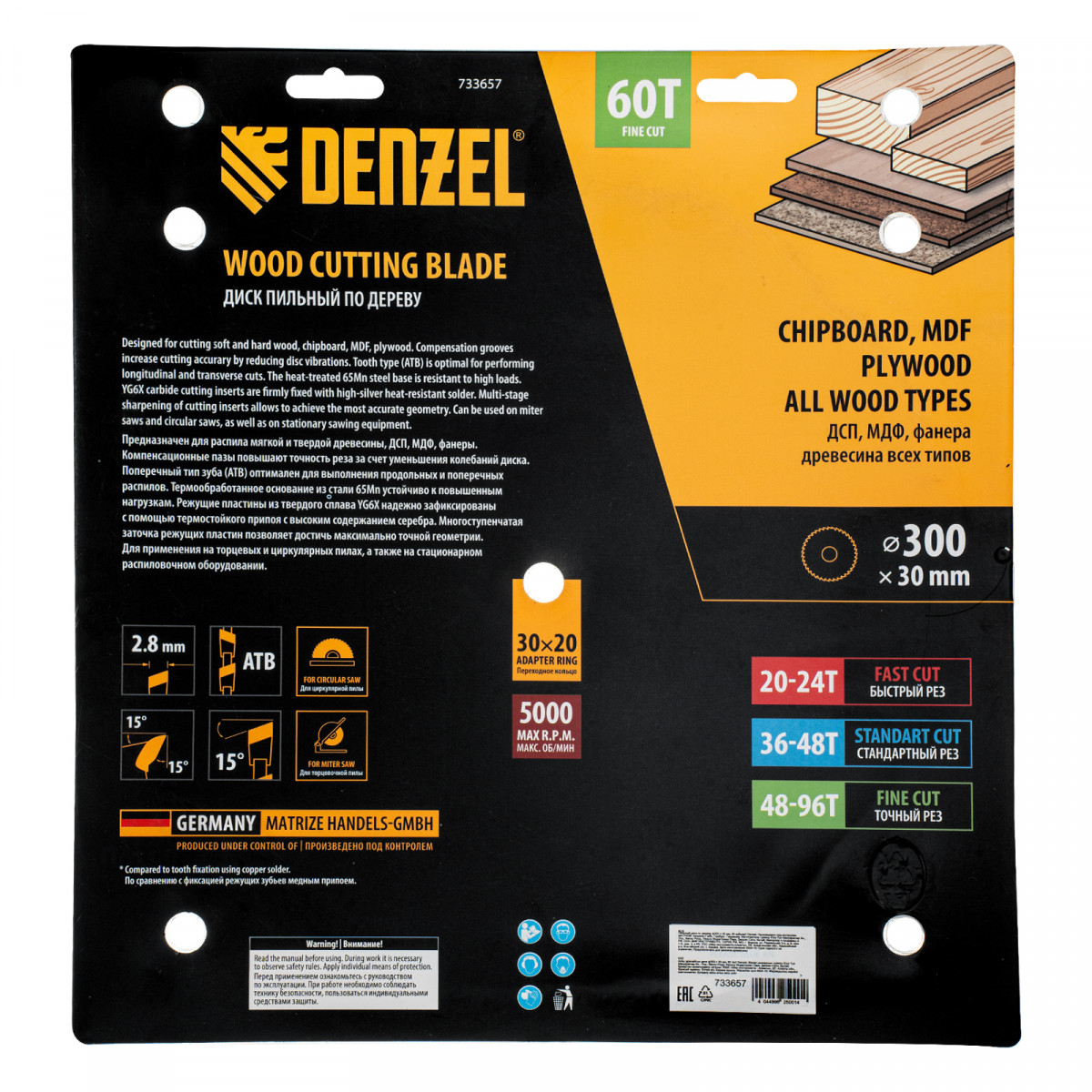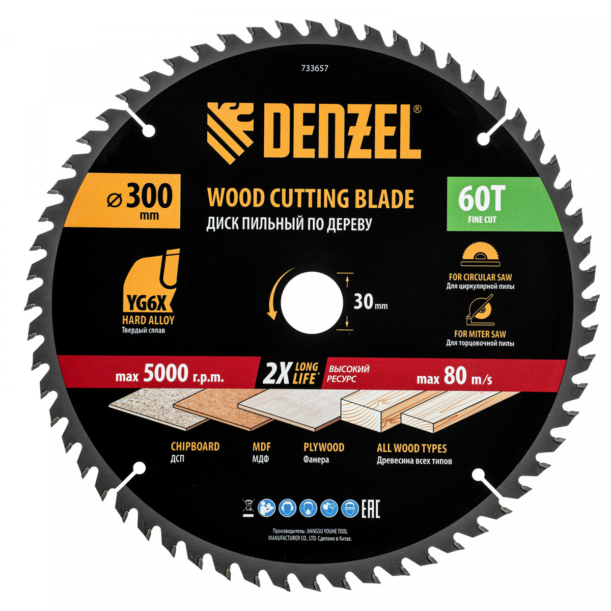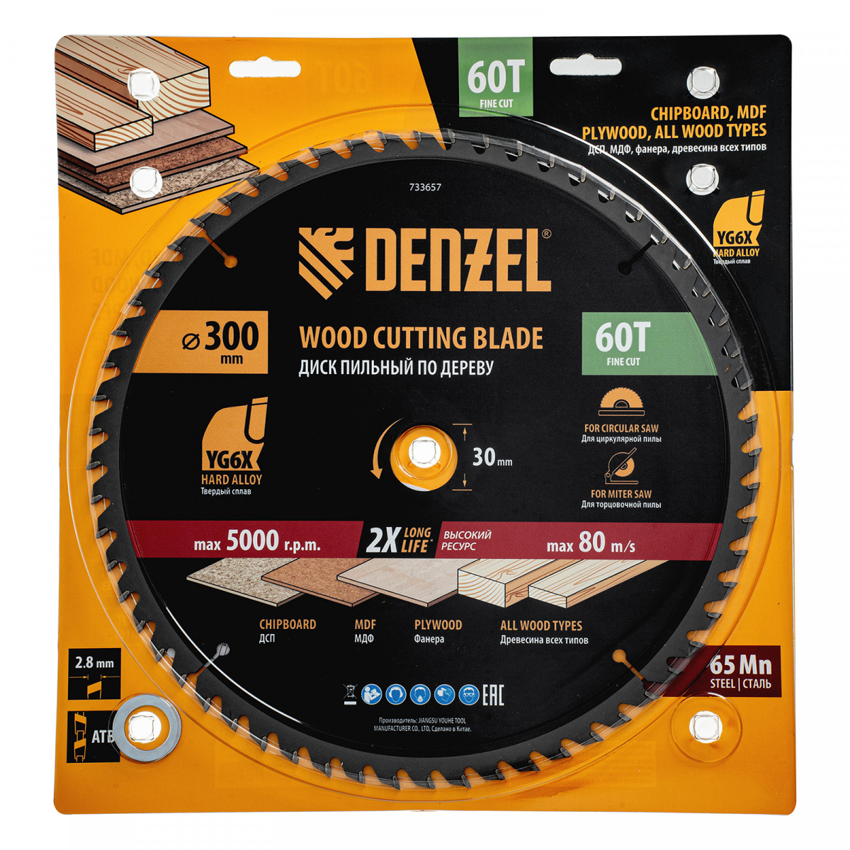 Пильный диск по дереву ф300 х 30 мм, 60 зубьев Denzel