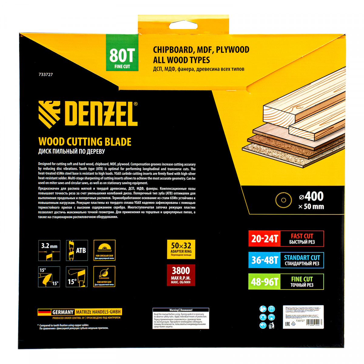 Пильный диск по дереву ф400 х 50 мм, 80 зубьев Denzel