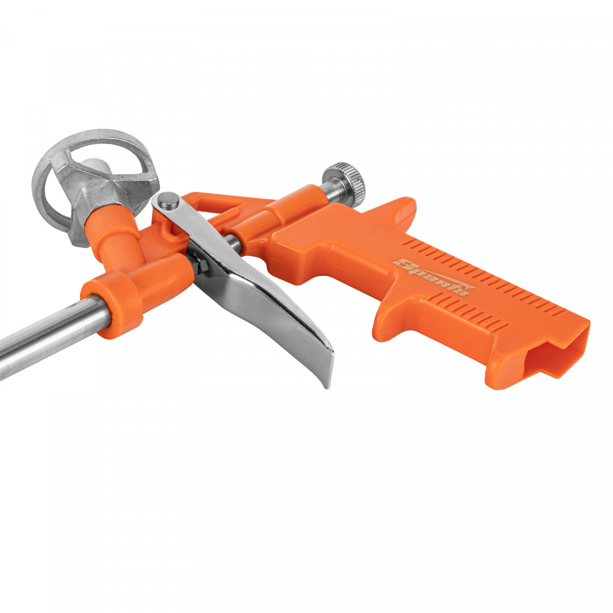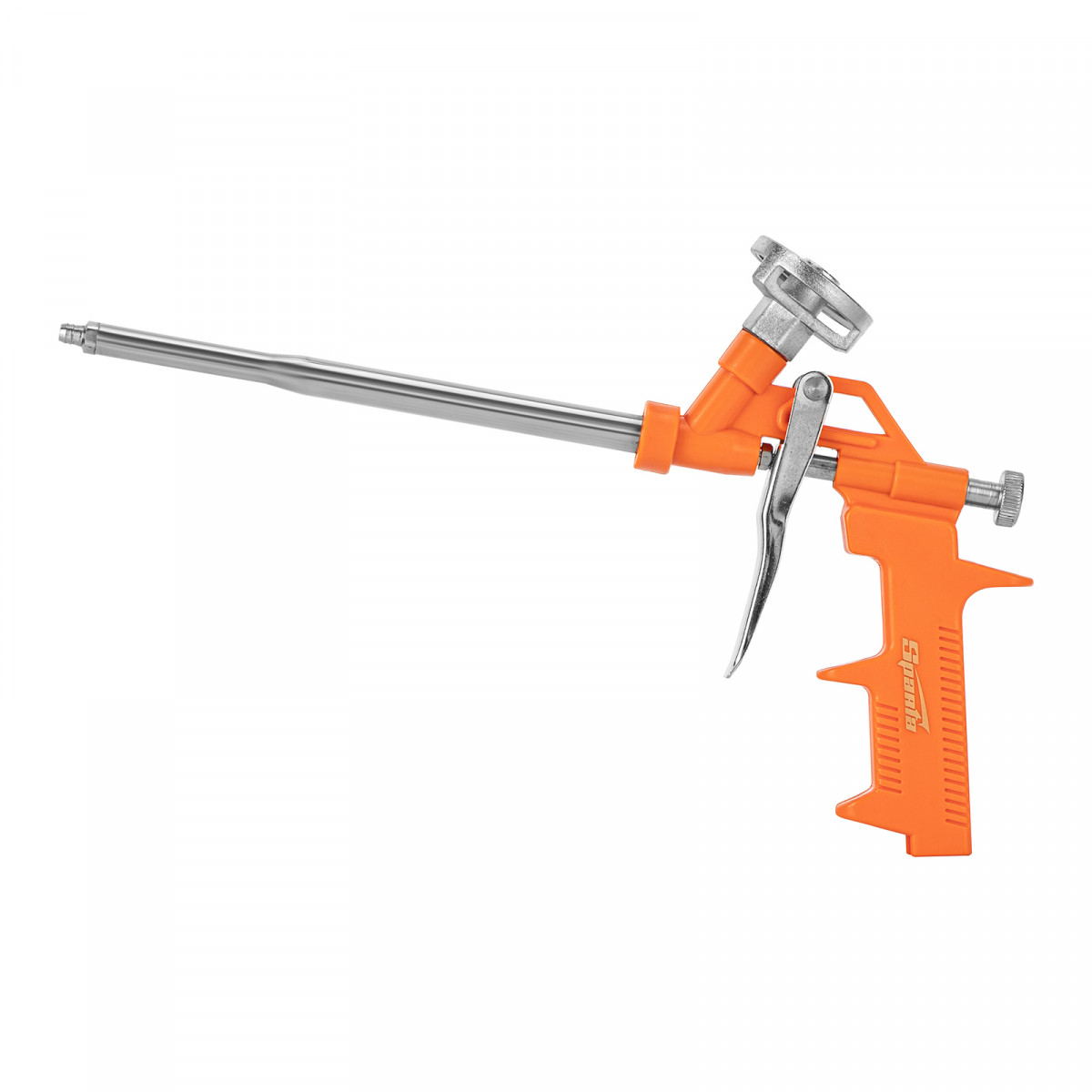 Пистолет для монтажной пены Sparta 88674 используется для уплотнения и герметизации различных конструкций, заполнения трещин и пустот. Корпус изготовлен из ударопрочного пластика, а ствол из стали, что снижает риск поломки пистолета в случае удара или падения. Металлический адаптер повышает надежность инструмента. Пистолет будет полезен строителям, мастерам по ремонту, а также пригодится в быту — специальных знаний для его эксплуатации не требуется.