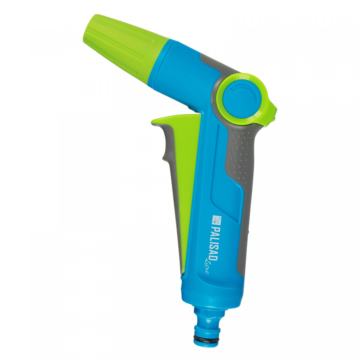 Пистолет-распылитель Palisad LUXE 65797 с курком и регулируемой форсункой обеспечивает подачу жесткой струи воды, конусное распыление и работу в режиме «туман», поэтому позволяет быстро поливать большие участки.
