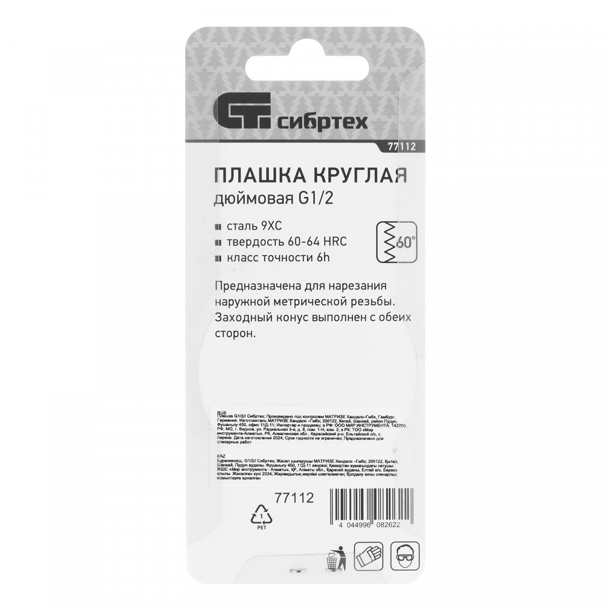 Плашка G1/2 Сибртех