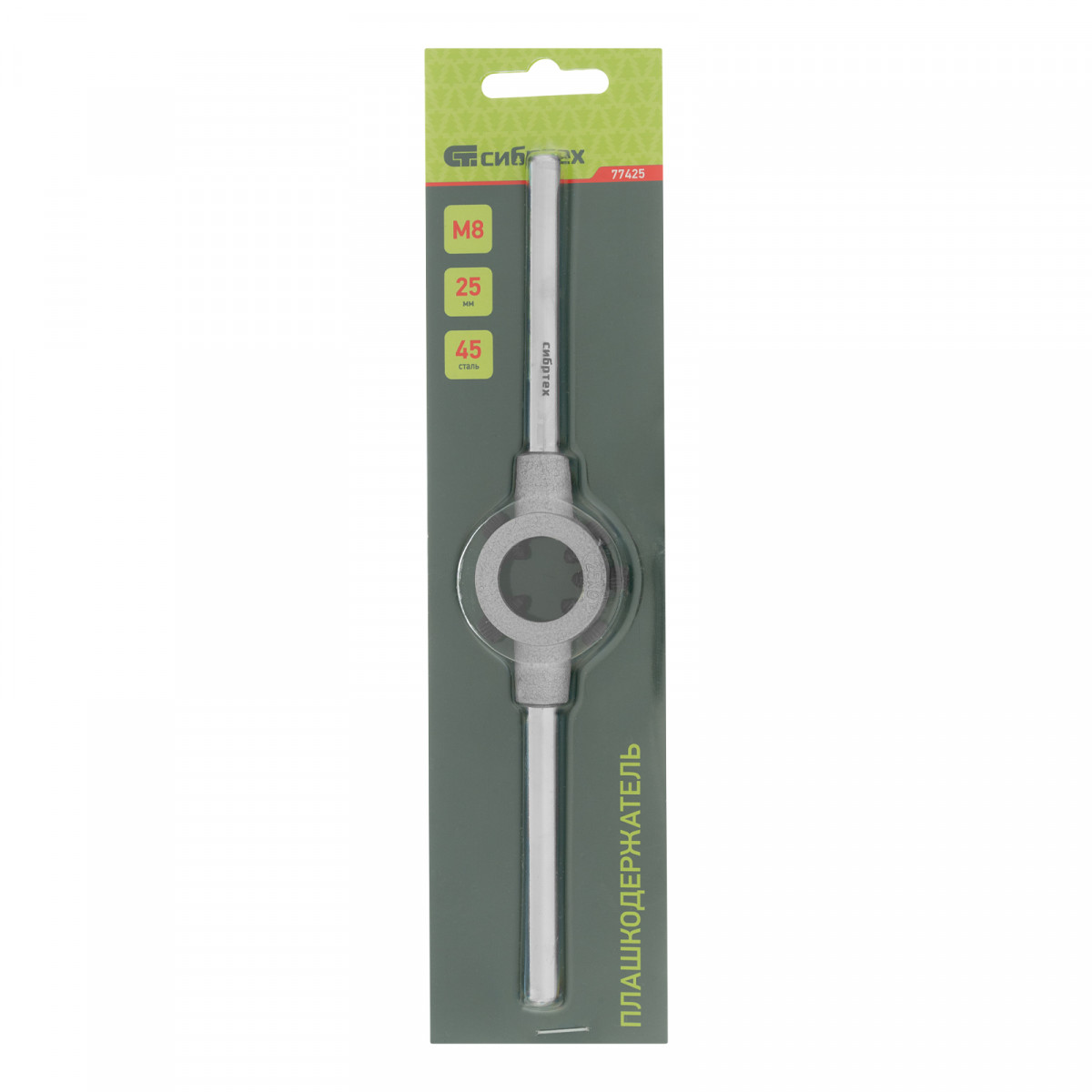 Плашкодержатель Сибртех 77425 предназначен для захвата плашек диаметром 25 мм. Пригодится для ручного нарезания резьбы при проведении слесарных и монтажных работ. Плашкодержатель позволяет приложить необходимое усилие для создания ровной резьбы.