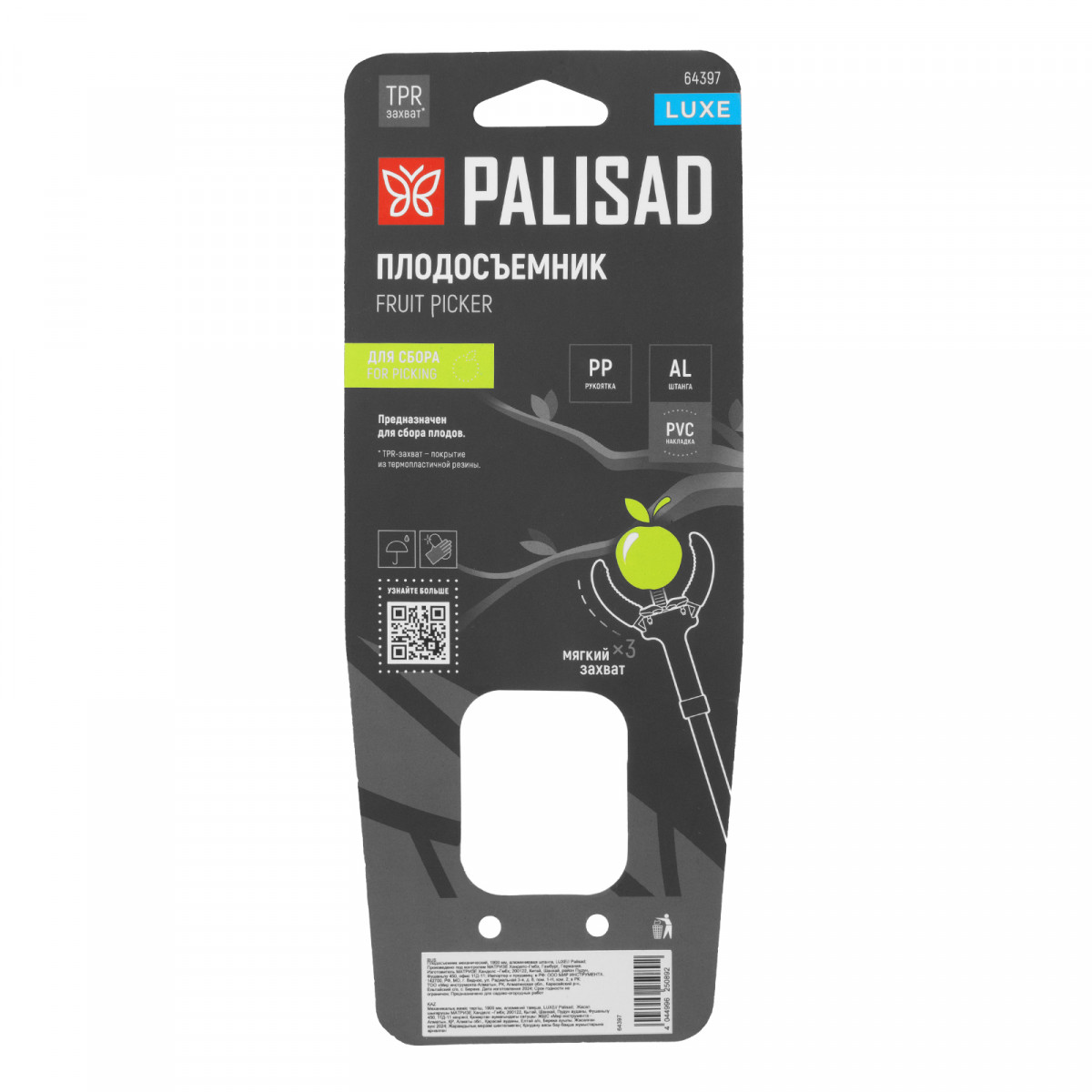 Плодосъемник механический, 1900 мм, алюминиевая штанга, LUXE Palisad