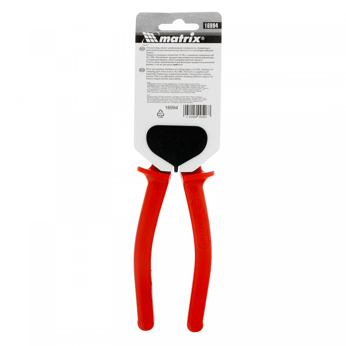 Плоскогубцы Econom, 200 мм, шлифованные, пластмассовые рукоятки Matrix