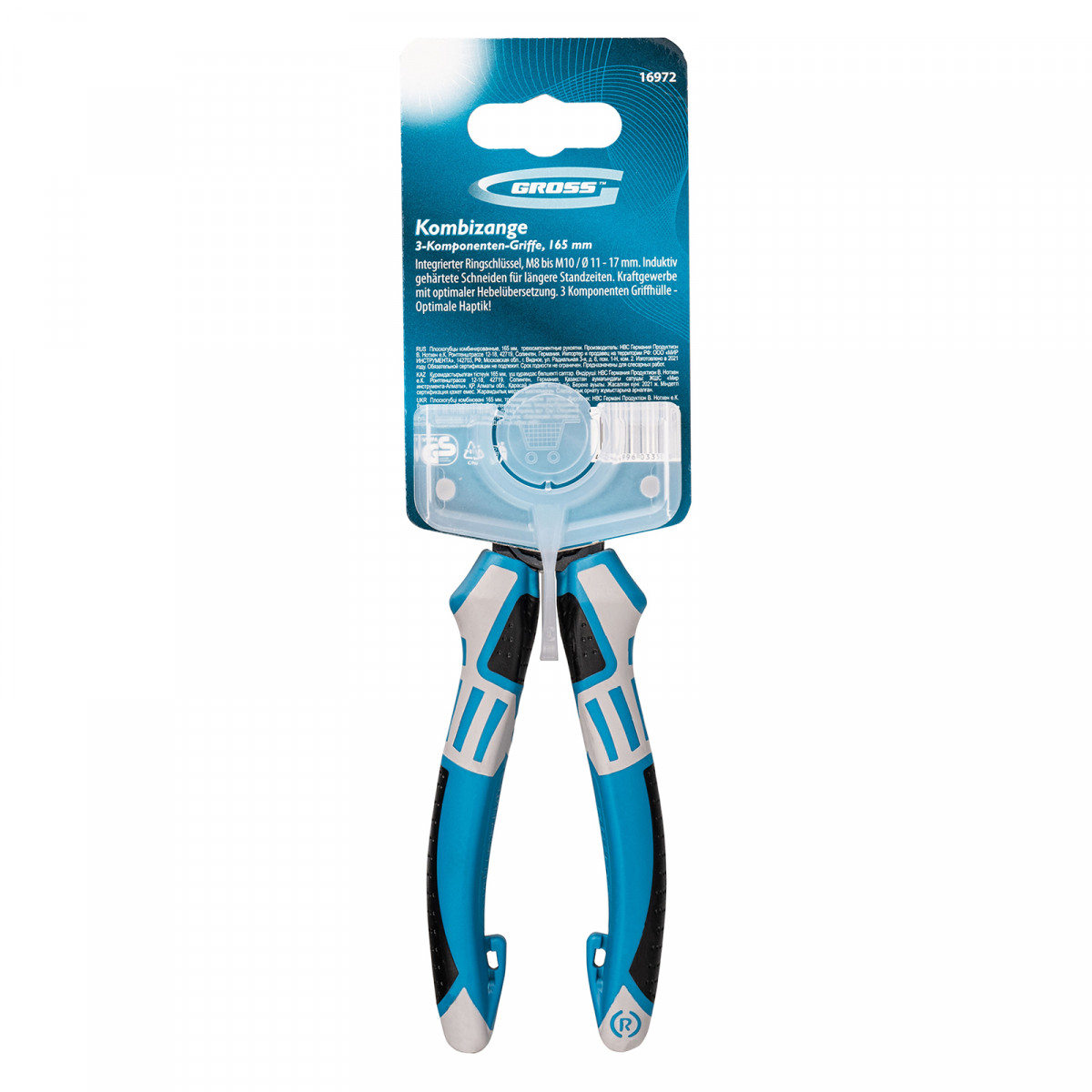 Плоскогубцы комбинированные 165 мм, трехкомпонентные рукоятки Gross