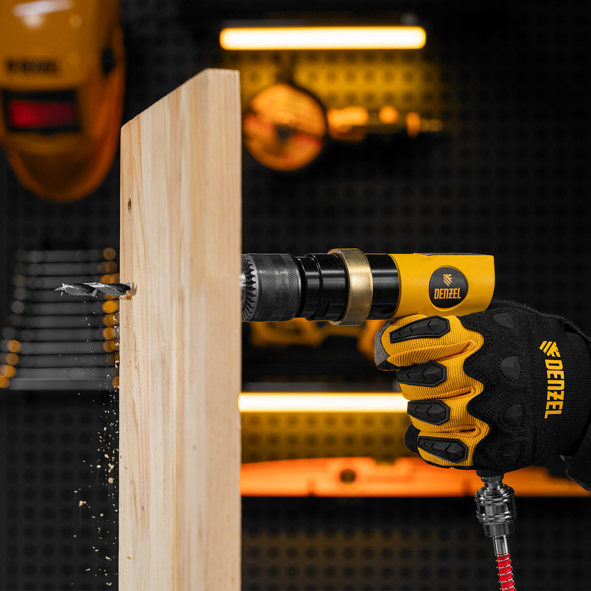 Пневматическая дрель PD500, 500 об/мин, 114 л/мин, 13 мм Denzel