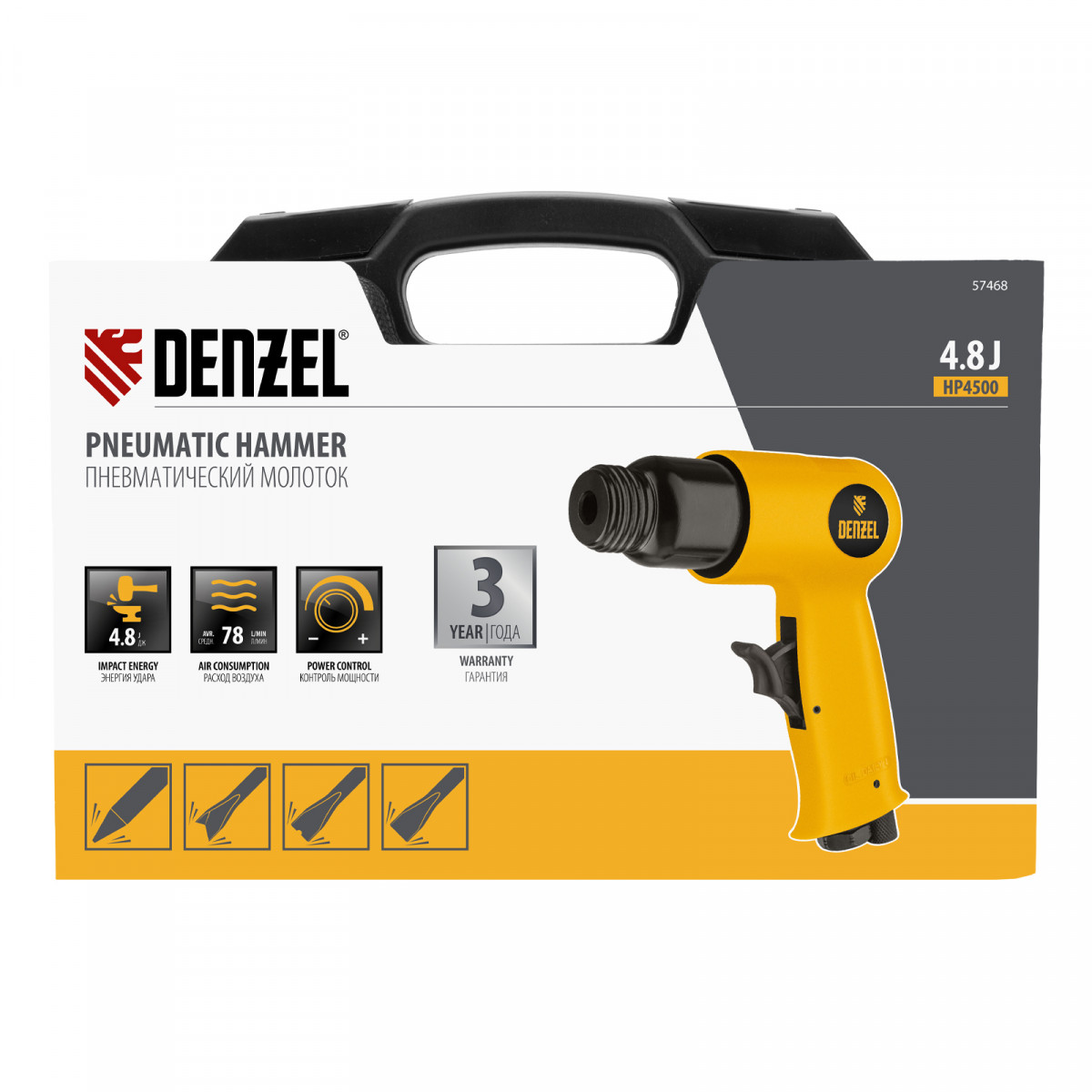 Пневматический молоток НР4500 + набор насадок, 113 л/мин, 4500 уд/мин Denzel