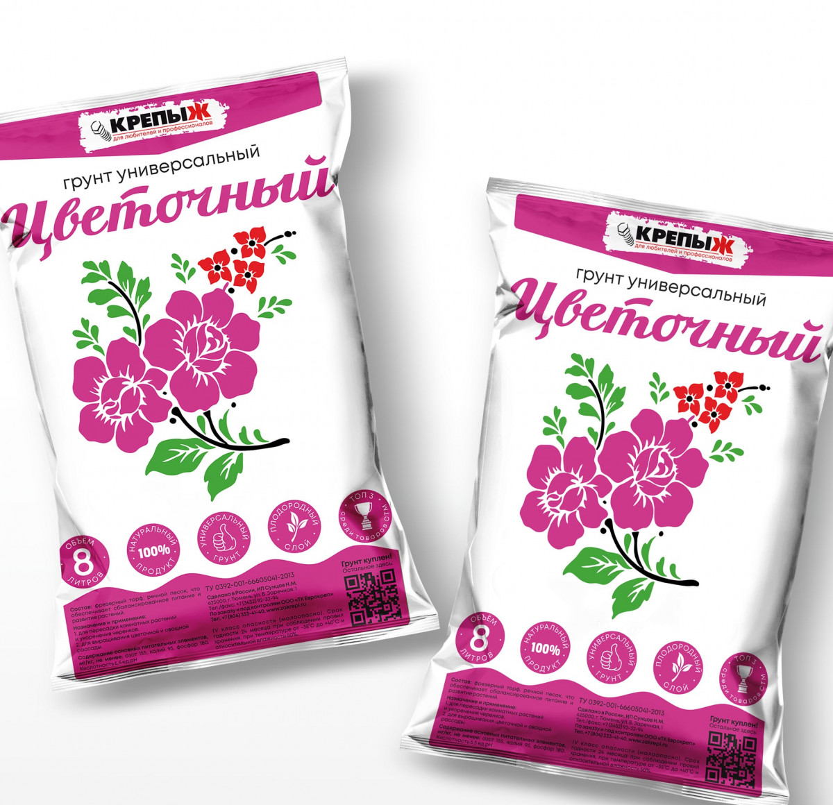 Почвогрунт цветочный универсальный 8л КРЕПЫЖ