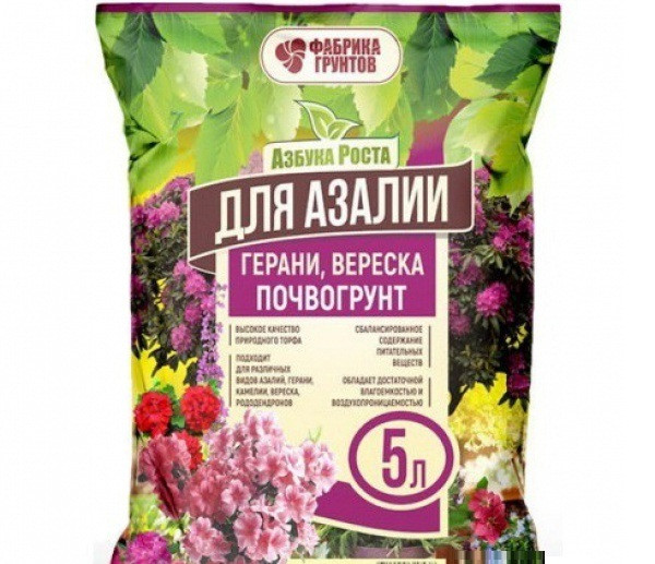 Почвогрунт Для азалии, герани, вереска 5л Азбука Роста